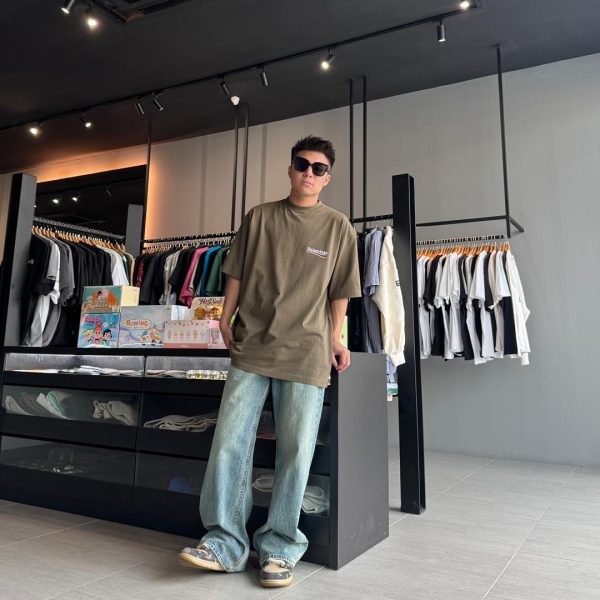 BALENCIAGA WAVE EMBROIDERY ARMY GREEN TEE