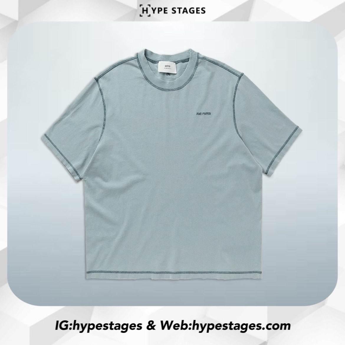 - Minimal “AMI PARIS” embroidery at chest