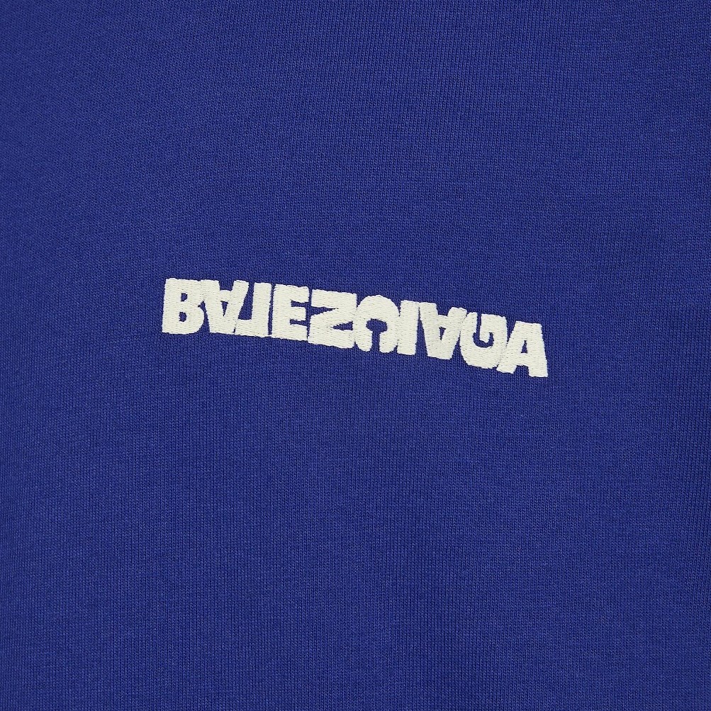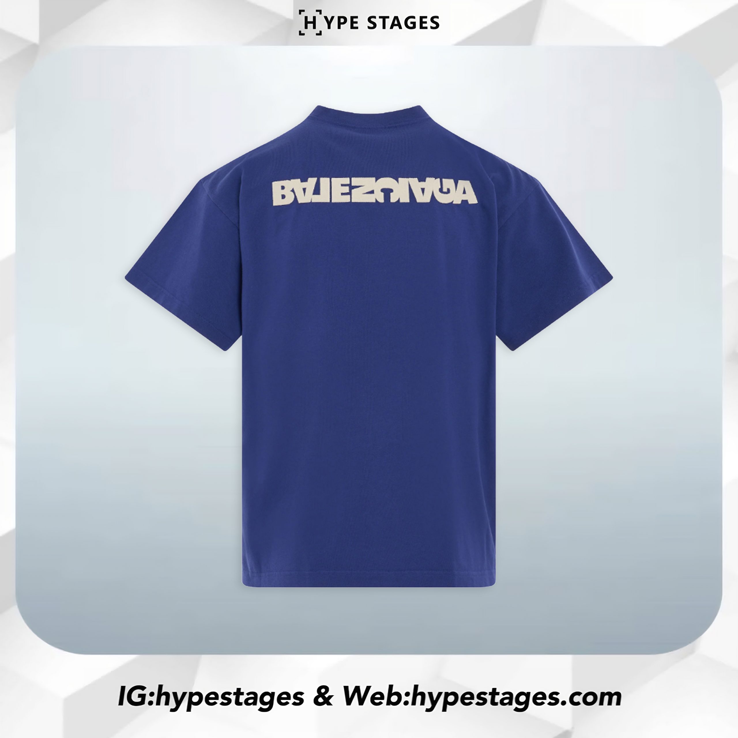 The BALENCIAGA Blue Turn Slit Tee catches the eye with a twisted, slit-style white logo across both the chest and back. Designed in an oversized fit with a bold royal blue base, this tee blends minimal construction with impactful visual detail — ideal for fashion-forward streetwear looks.