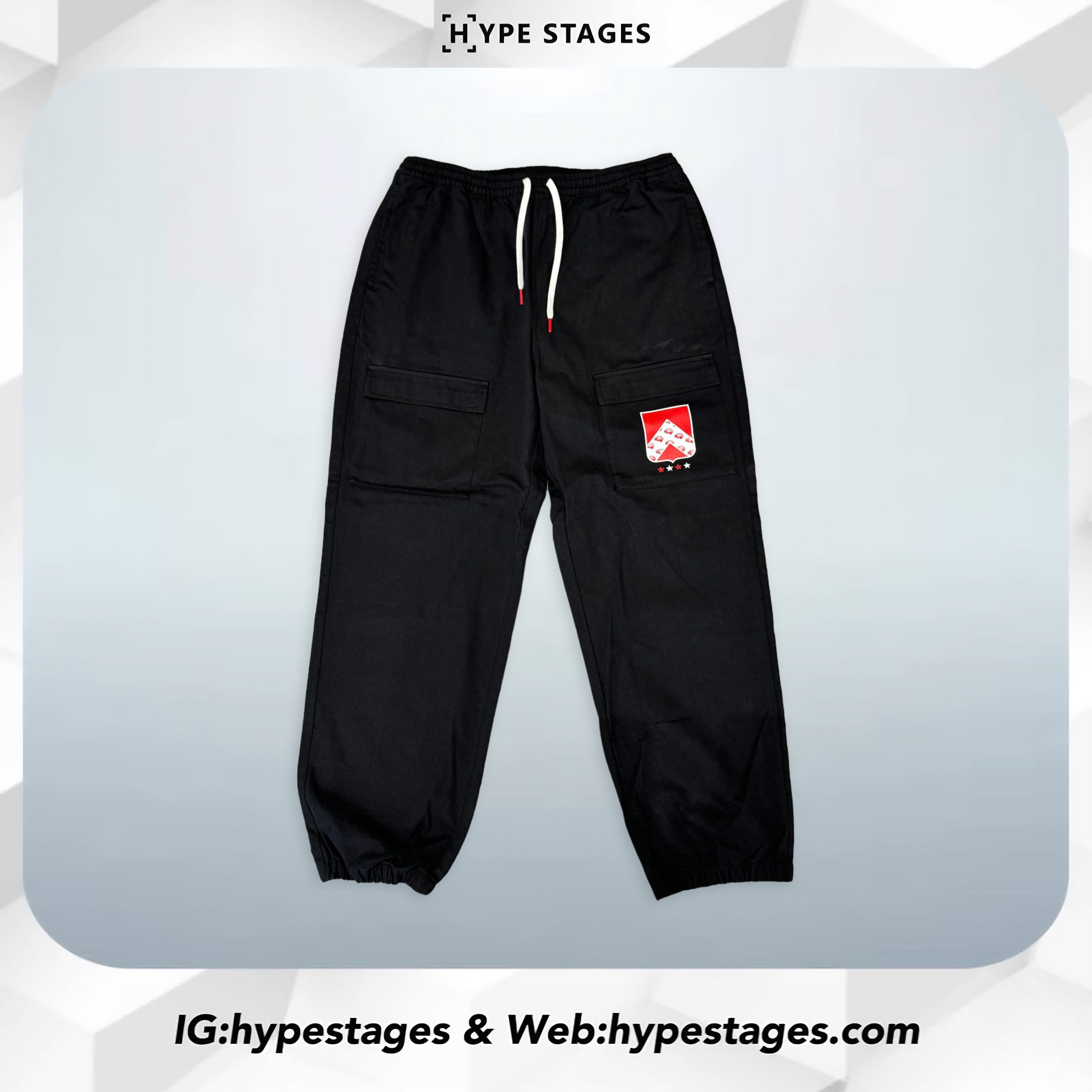 The CLOT Cargo Pocket Jeans deliver utility and edge in one stylish silhouette. Featuring dual side cargo pockets and a bold red CLOT logo patch on the leg, these black pants are constructed with a relaxed fit and drawstring waistband. A perfect match for streetwear looks with function.