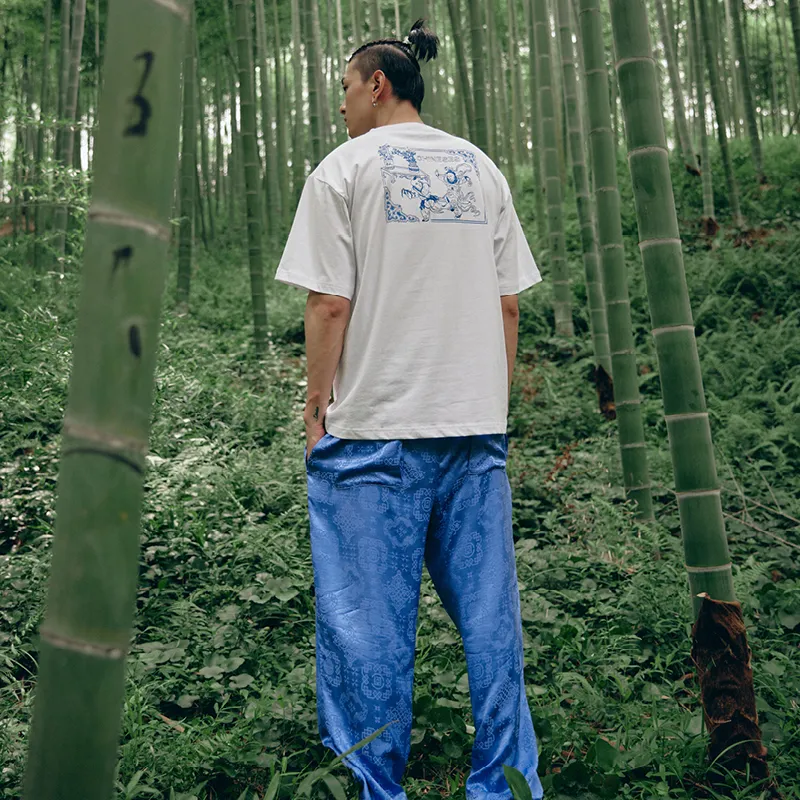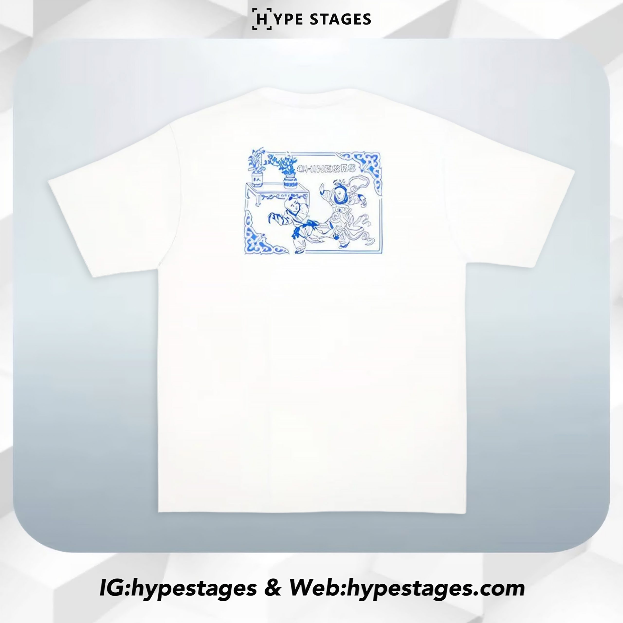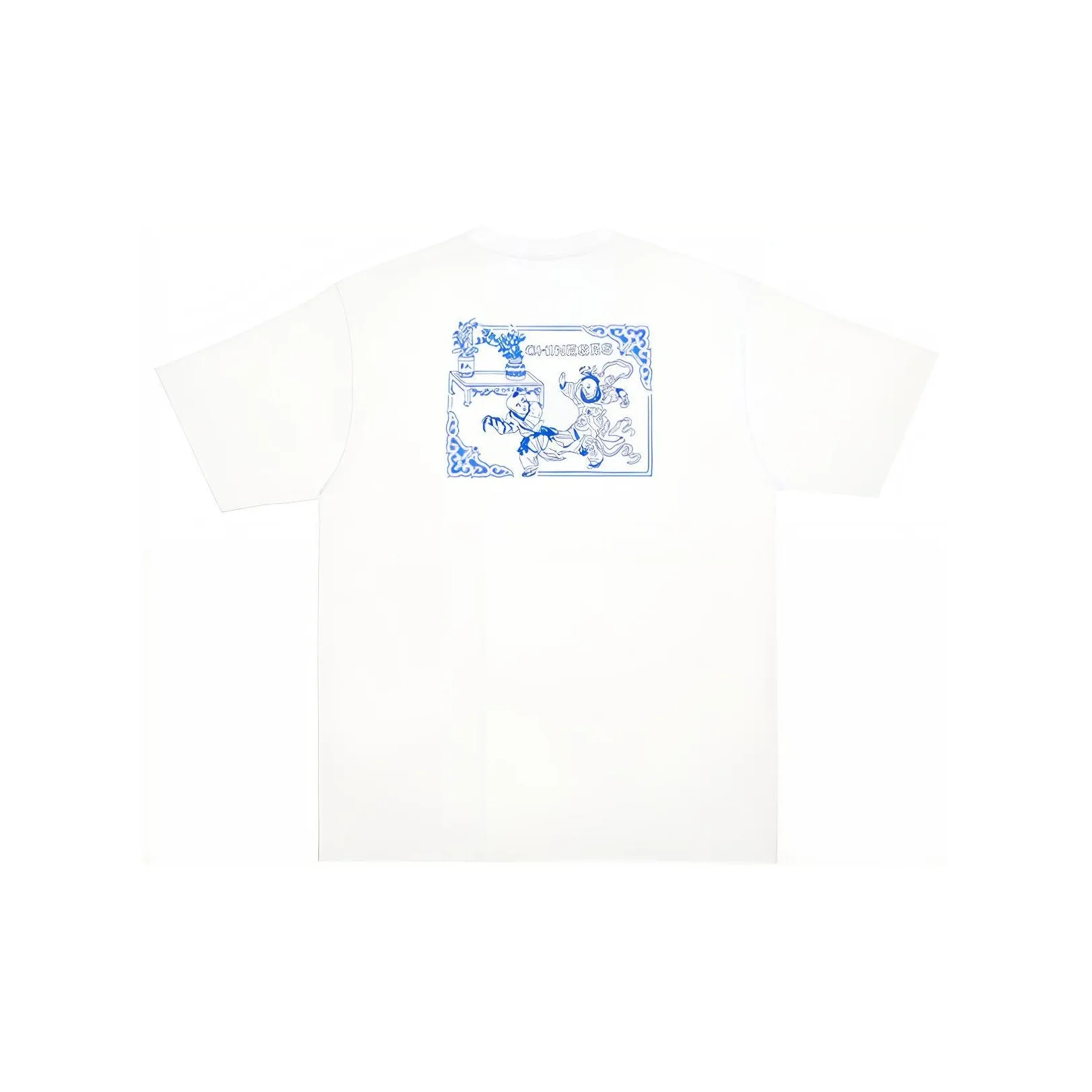 The CLOT Plant Vase Tee blends traditional Chinese art with streetwear minimalism. Featuring a delicate blue-and-white porcelain vase print on the chest and a larger scenic graphic on the back, this tee delivers a calm yet expressive visual identity. A peaceful fusion of heritage and modern design.