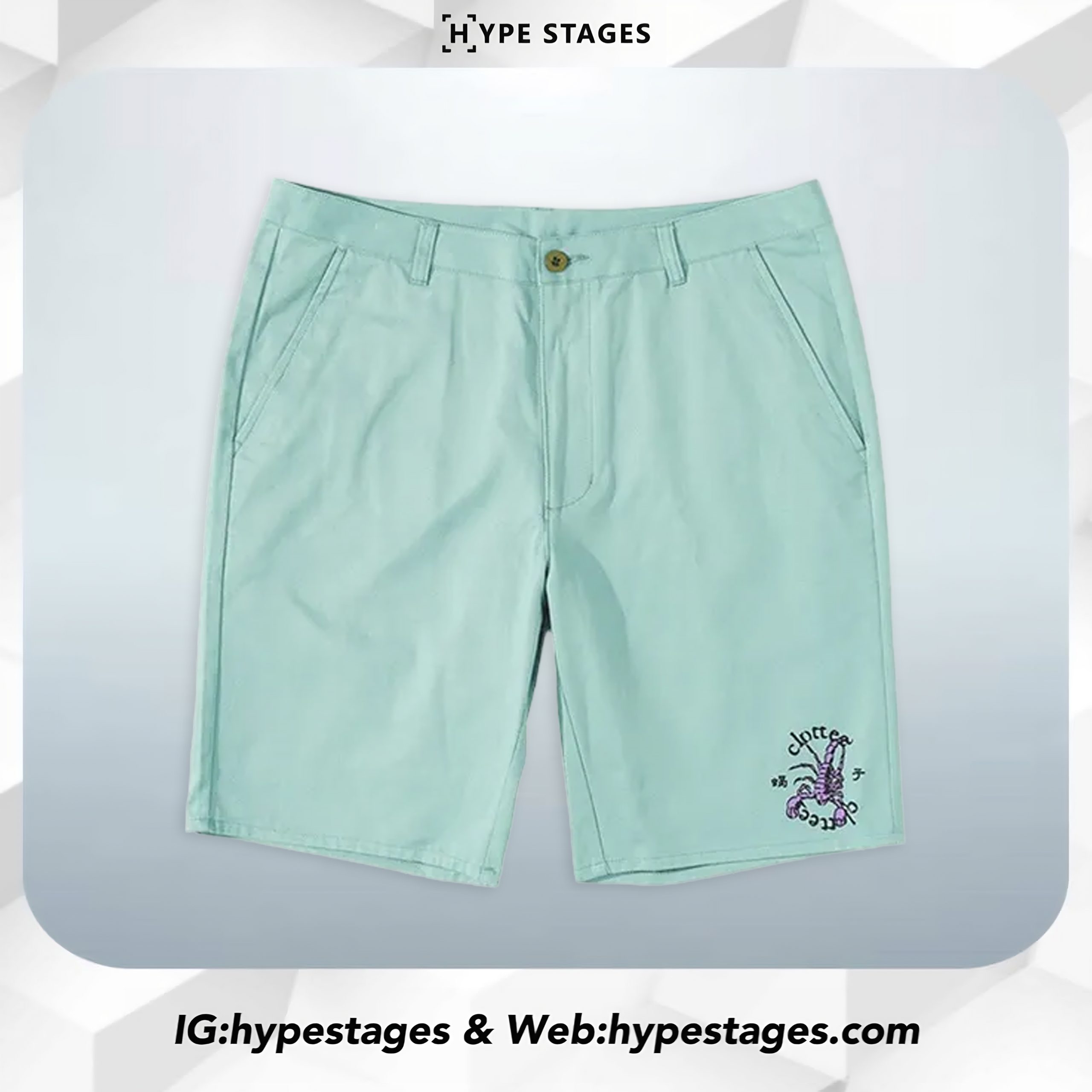 The CLOT Scorpion Logo Shorts deliver a fresh summer vibe with a bold twist. Featuring a unique scorpion graphic near the hem and crafted from lightweight cotton, these mint-colored shorts combine comfort with standout street style. Perfect for seasonal outings or laid-back everyday looks.