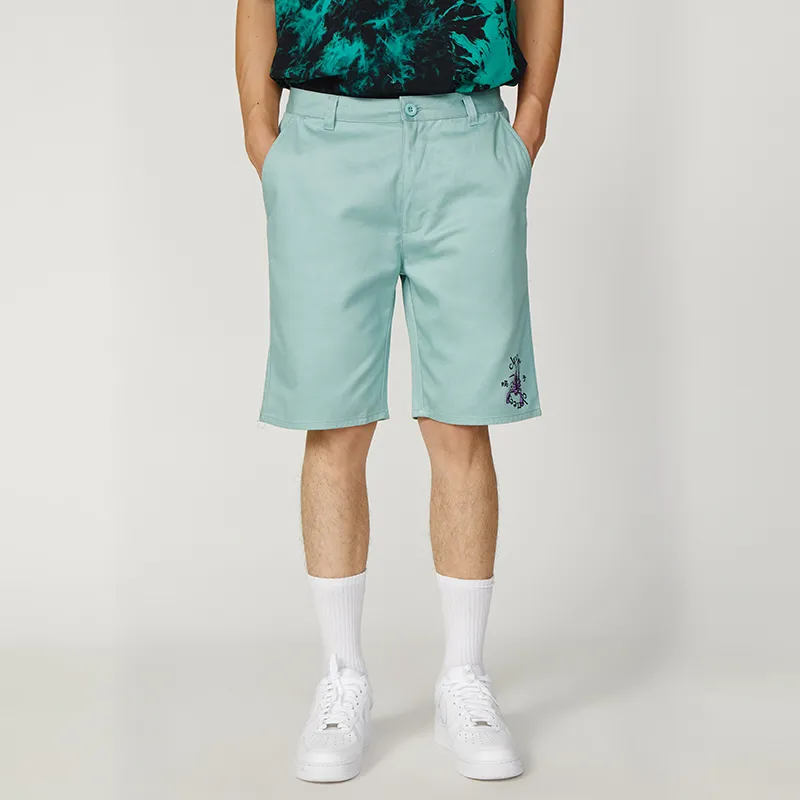 - Mint green shorts with scorpion print near hem