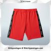 - Bold red shorts with branded side tape