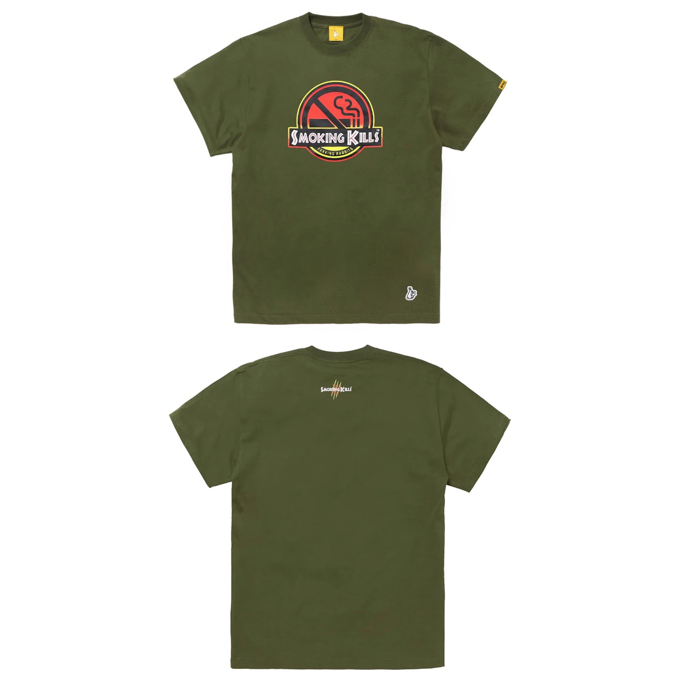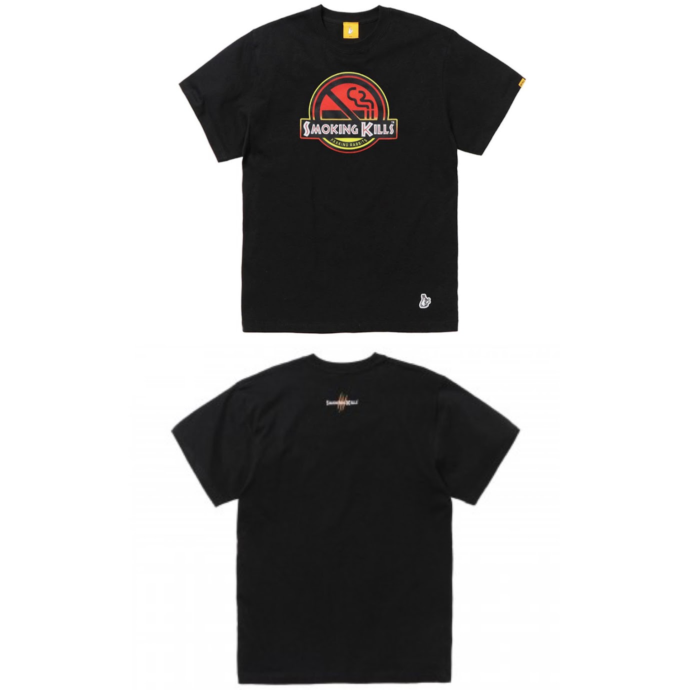 The FR2 No Smoking World Tee puts a bold twist on anti-smoking messaging, fusing FR2’s rebellious flair with a cinematic parody. Featuring a Jurassic-style “Smoking Kills” logo graphic on the chest and subtle back print, this tee balances street humor with iconic design. Available in black and green, it’s a must for collectors and rule-breakers alike.