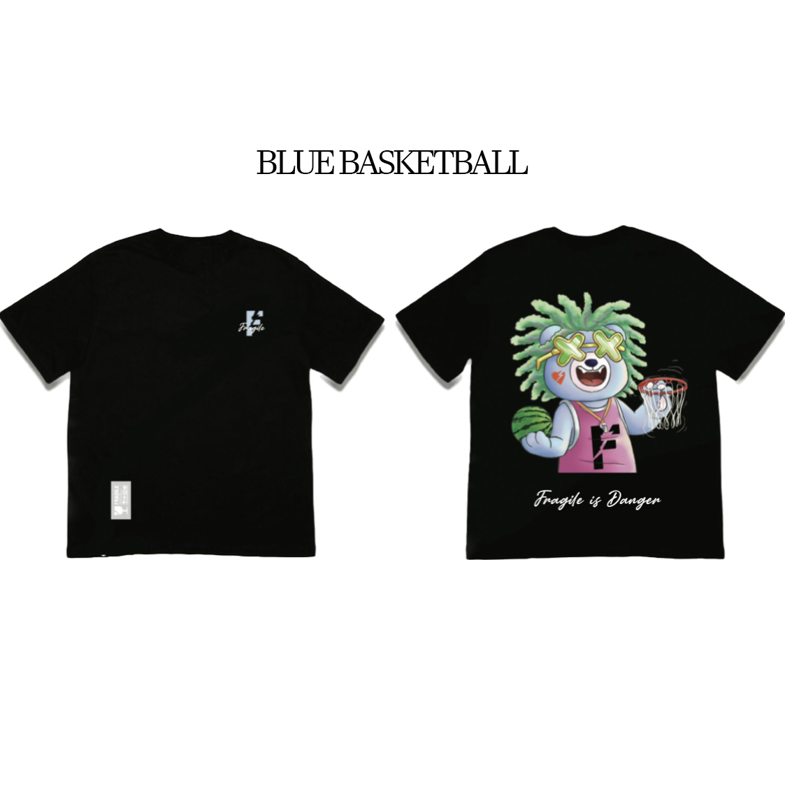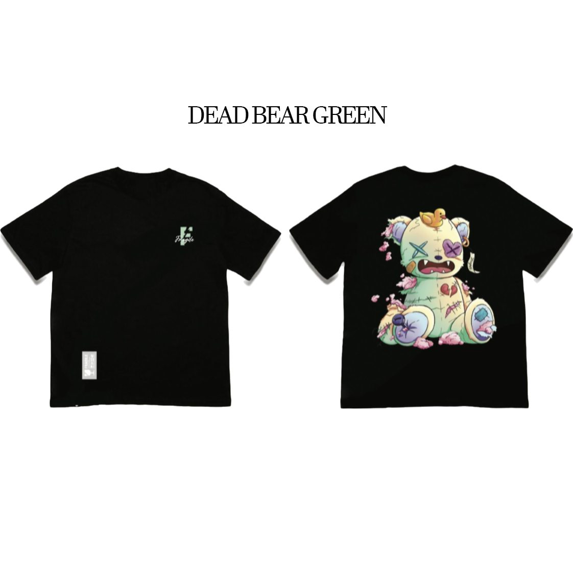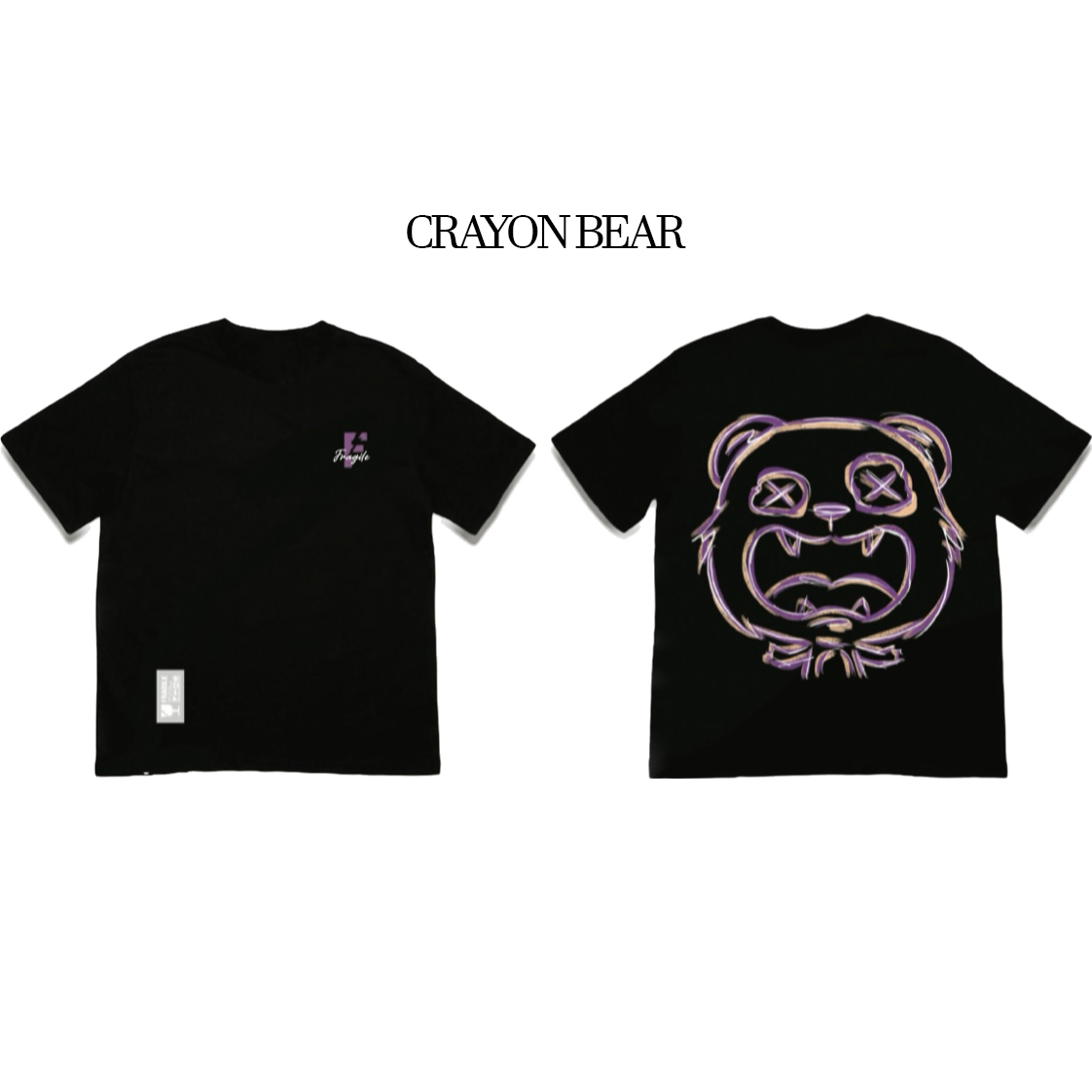 - FRAGILE front chest logo across all designs