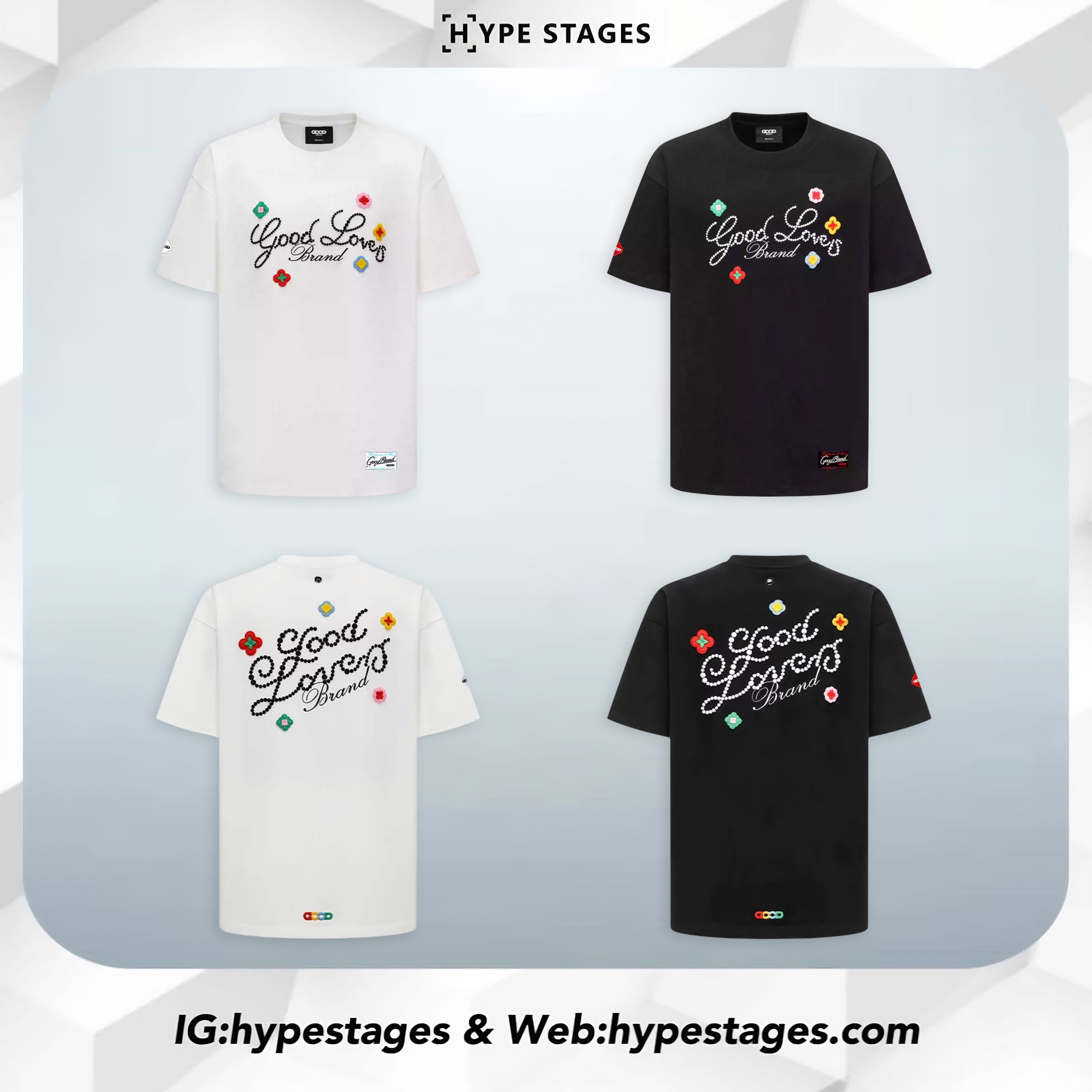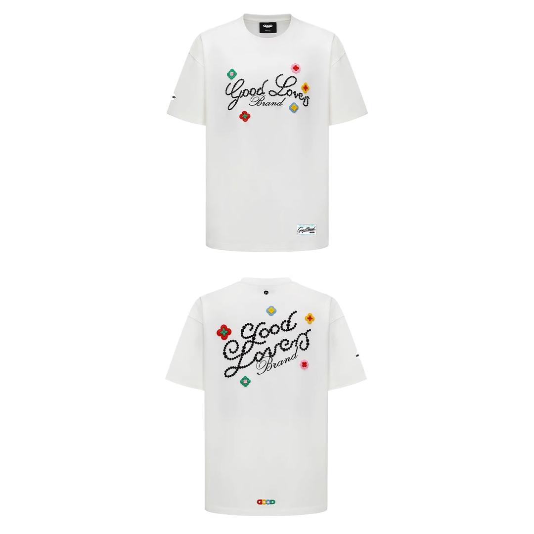 The GOODBRAND Scattered Flower Tee blends playful charm with streetwear edge, featuring multicolor embroidered floral motifs and signature rhinestone-studded script on both front and back. Available in black and white, it’s crafted in premium cotton for a boxy, unisex silhouette that elevates your casual rotation. Eye-catching yet wearable — your daily standout piece.