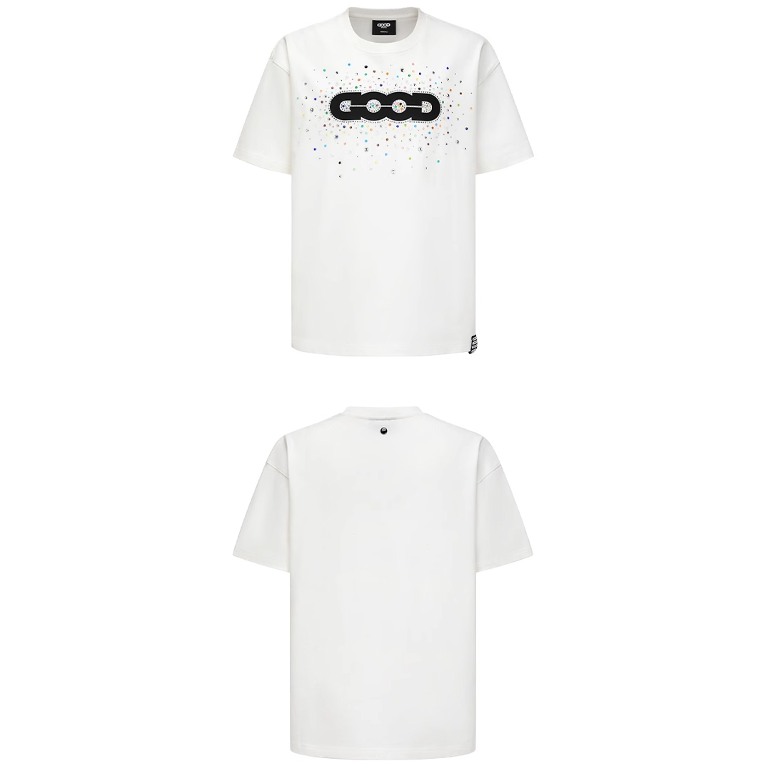 The GOODBRAND SCATTERED GLITTER TEE is a celebration of candy-bright joy and gem-like detailing. Featuring playful typography mixed with scattered rhinestones, this tee adds sparkle to your everyday vibe. Available in classic black and fresh white, it’s a sweet yet striking piece from the GOODBRAND 25SS lineup.