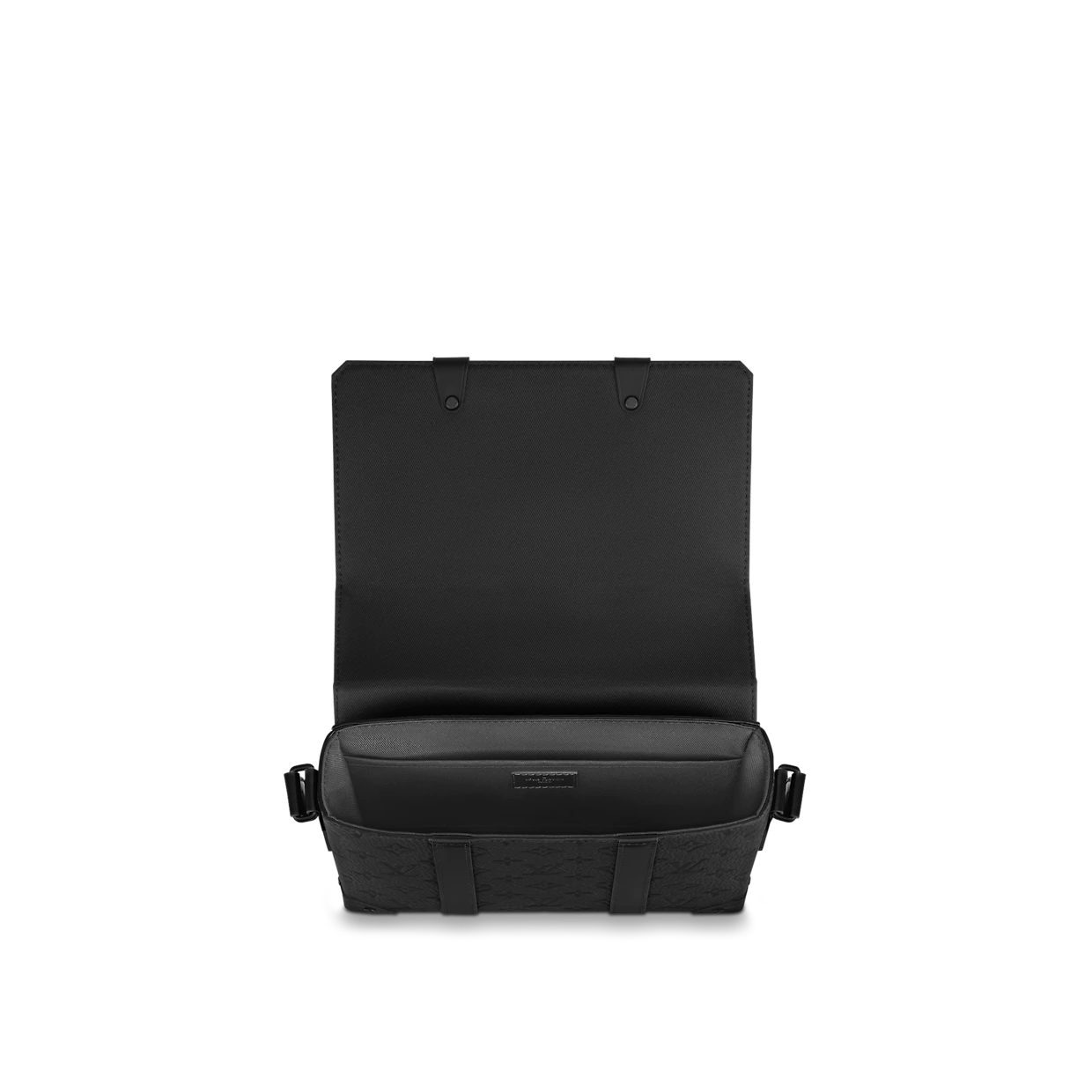 The LV Trunk Messenger (M57726) is a bold reinterpretation of classic Louis Vuitton trunks with a streetwear twist. Crafted from full-grain black Taurillon leather and embossed with Monogram motifs, it features trunk-inspired edge reinforcements and a magnetic flap closure. Designed with an urban rectangular silhouette and adjustable strap, it offers both structured elegance and practical appeal.