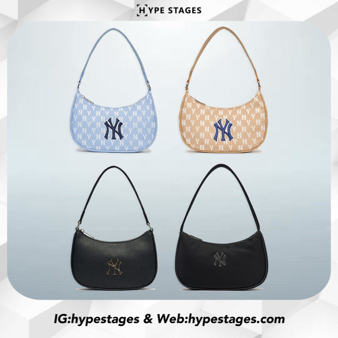 The MLB Hand Bag brings iconic sports branding into refined daily fashion. Featuring an elegant baguette silhouette and prominent Yankees logo on the front, this bag is offered in monogram canvas or sleek leather finishes. Whether worn on the shoulder or handheld, it’s the perfect street-lux accessory to complete any outfit.