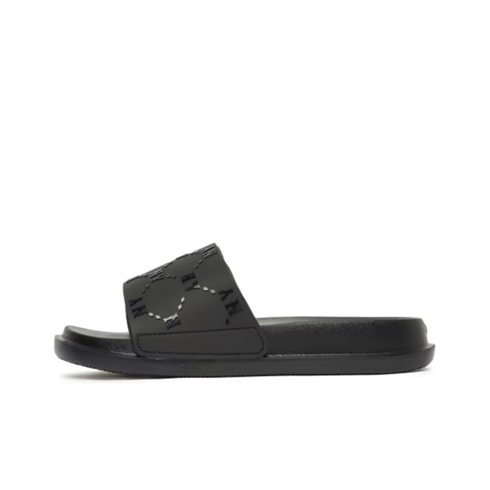The MLB NY Monogram Rubber Slides deliver all-black minimalism with elevated street heritage. Crafted from durable rubber and embossed with the Yankees monogram pattern, these slides are waterproof, easy to clean, and built for everyday comfort. A monochrome essential that blends team loyalty with effortless style.