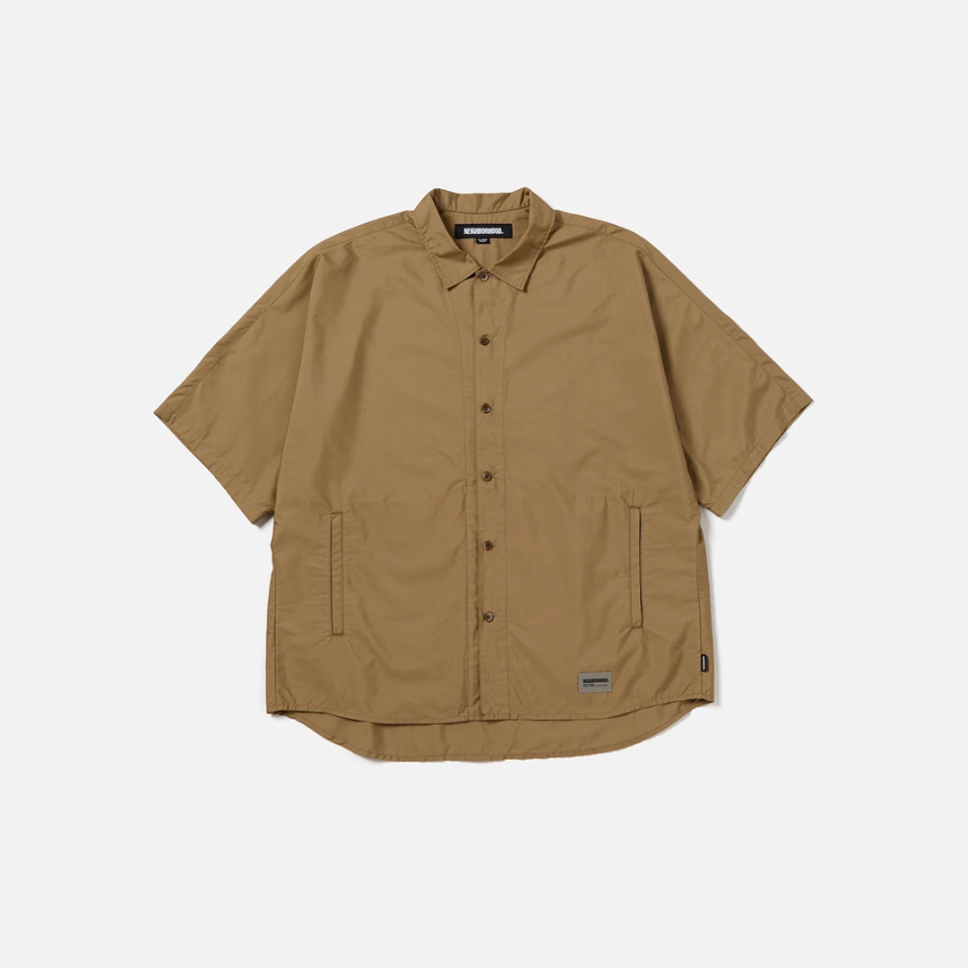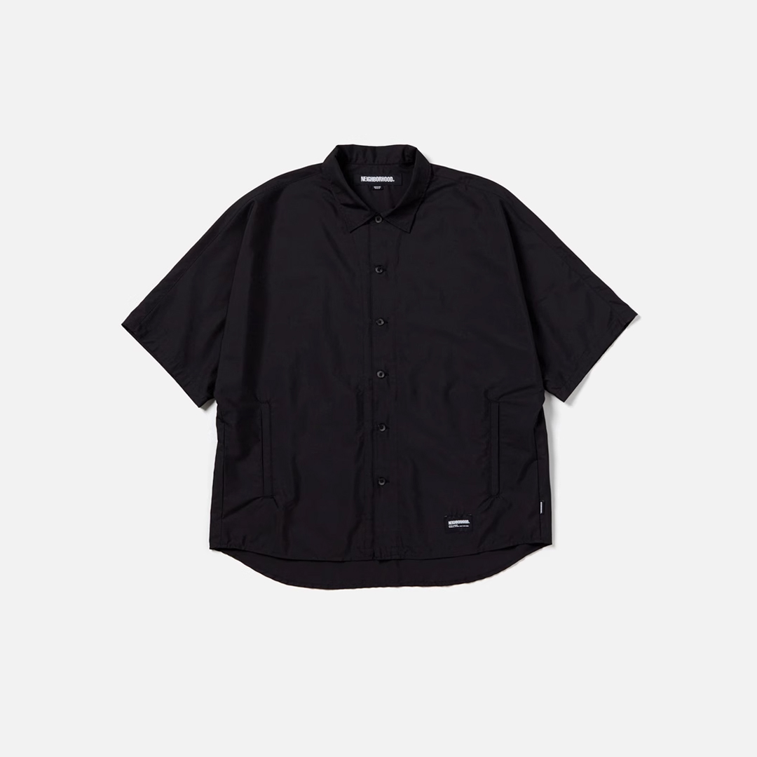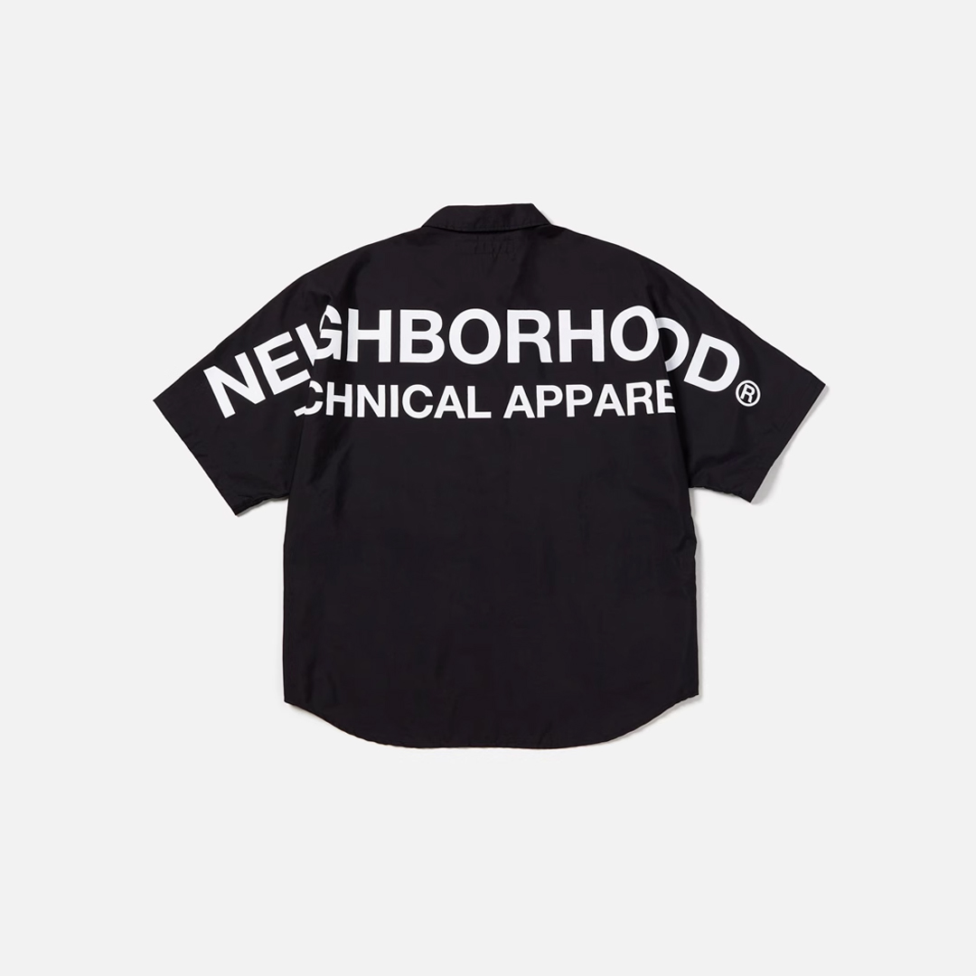 The NEIGHBORHOOD Back Logo Short Sleeve Shirt is a clean and structured staple with bold attitude. Made from durable cotton in versatile tones, it features a sharp collar and full front button closure. The highlight lies on the back — oversized NEIGHBORHOOD branding paired with “TECHNICAL APPAREL” lettering brings a strong utilitarian touch to this street-ready essential.