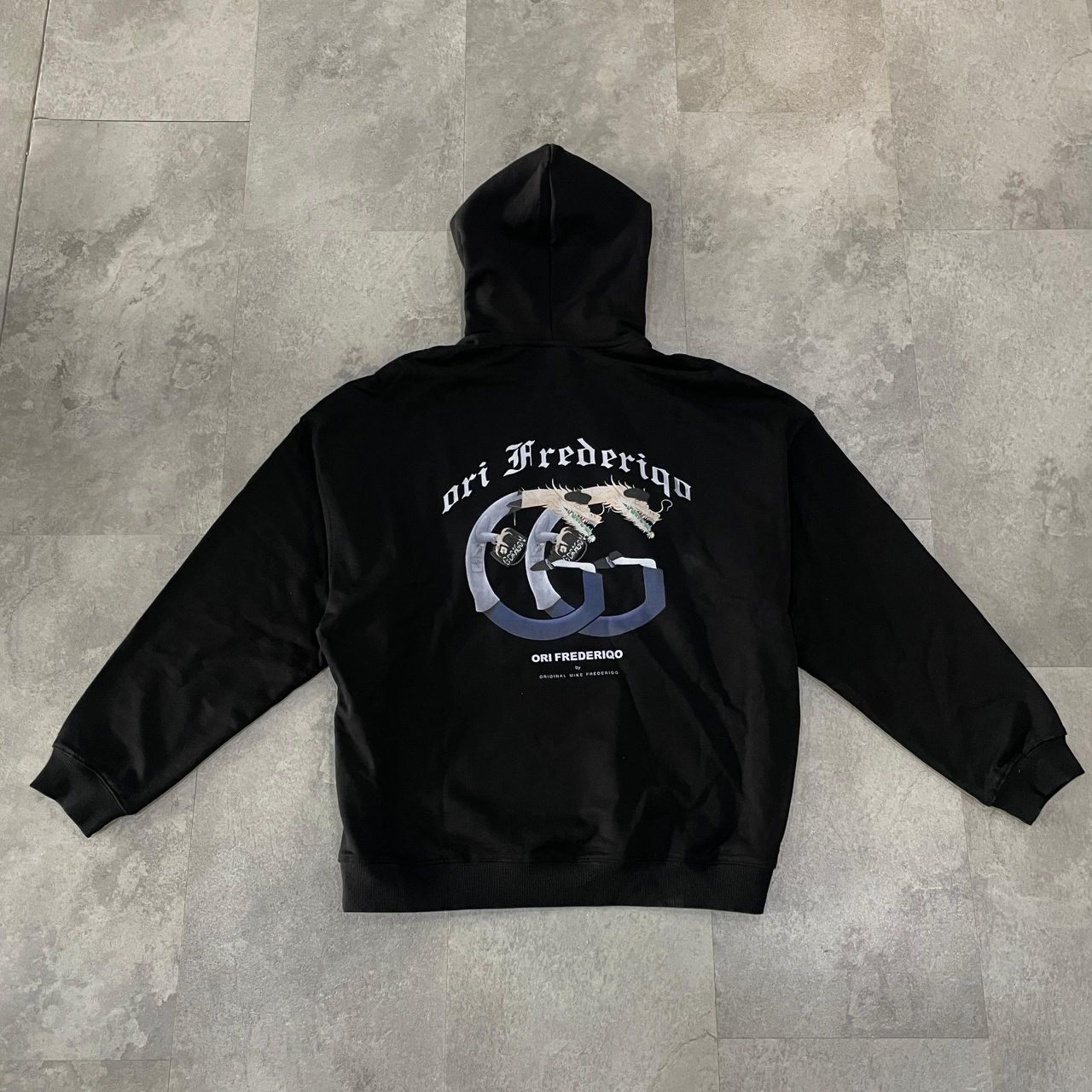 Bold and stylish, the ORIGINAL FREDERIQO HOODIE (DRAGON) features a powerful dragon motif in icy tones with a futuristic twist on the GG insignia. Its cozy heavyweight fabric and oversized silhouette make it a winter streetwear essential.