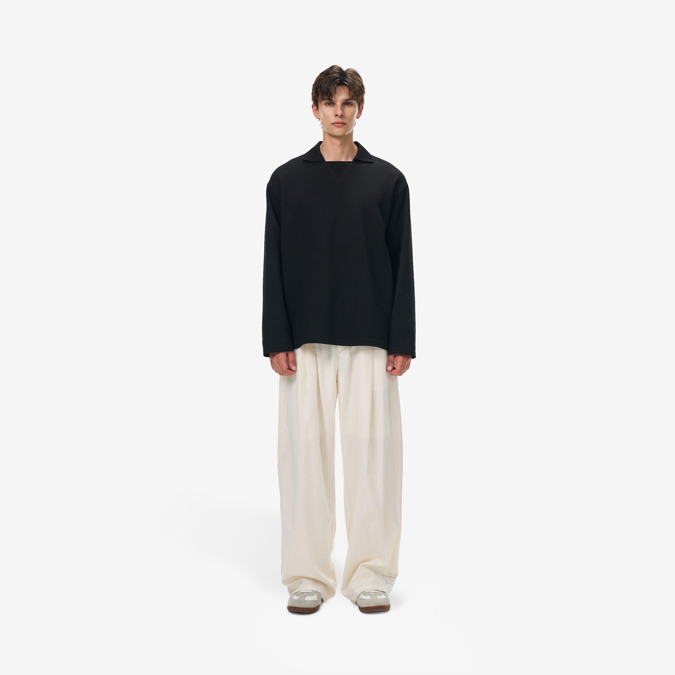 - Wide-leg silhouette for relaxed structure