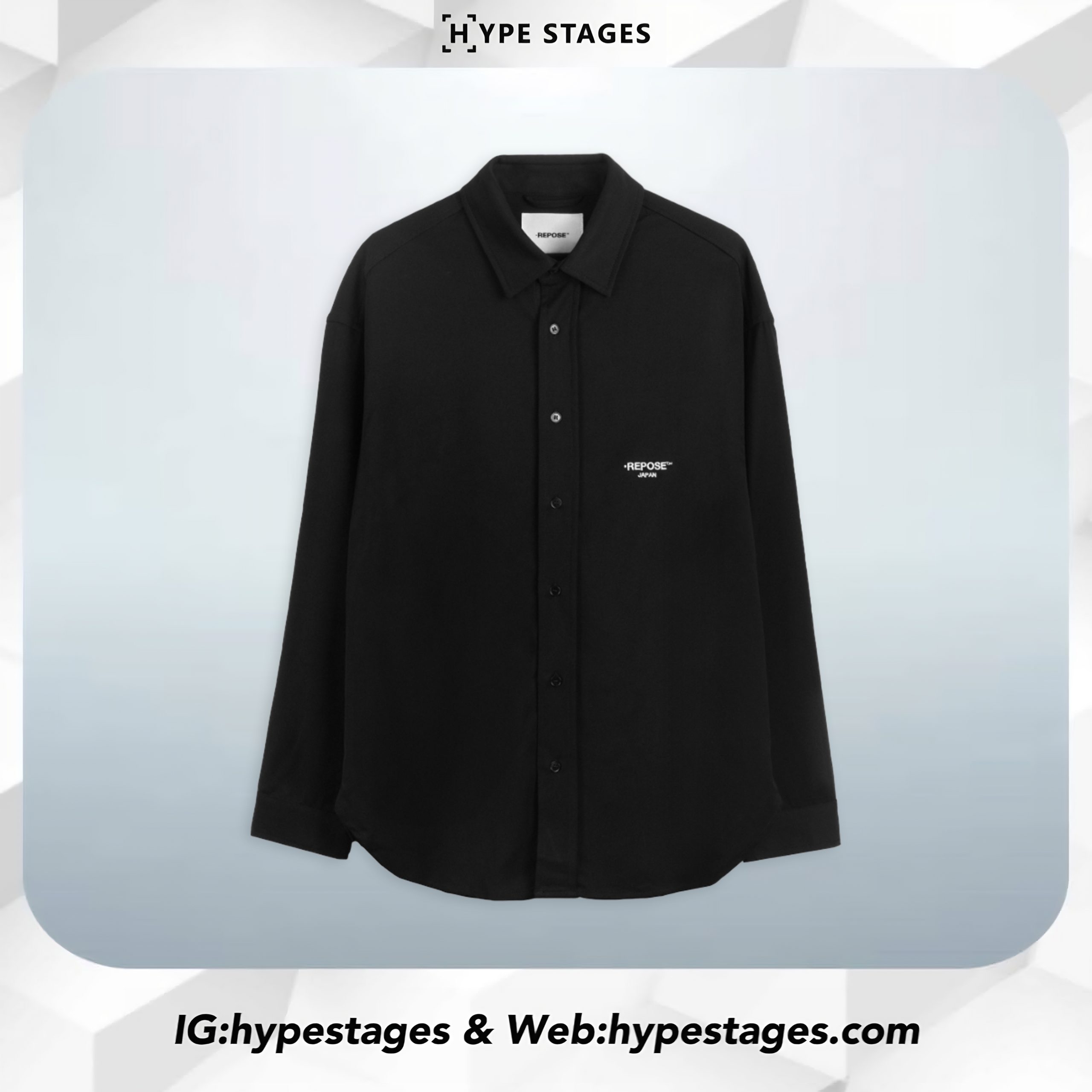 The REPOSE Side Logo Shirts combines classic tailoring with subtle contemporary detail. Featuring a traditional pointed collar and button-up design, this shirt stands out with a clean embroidered logo placed off-center at the chest. The refined silhouette and breathable fabric make it a versatile wardrobe staple.