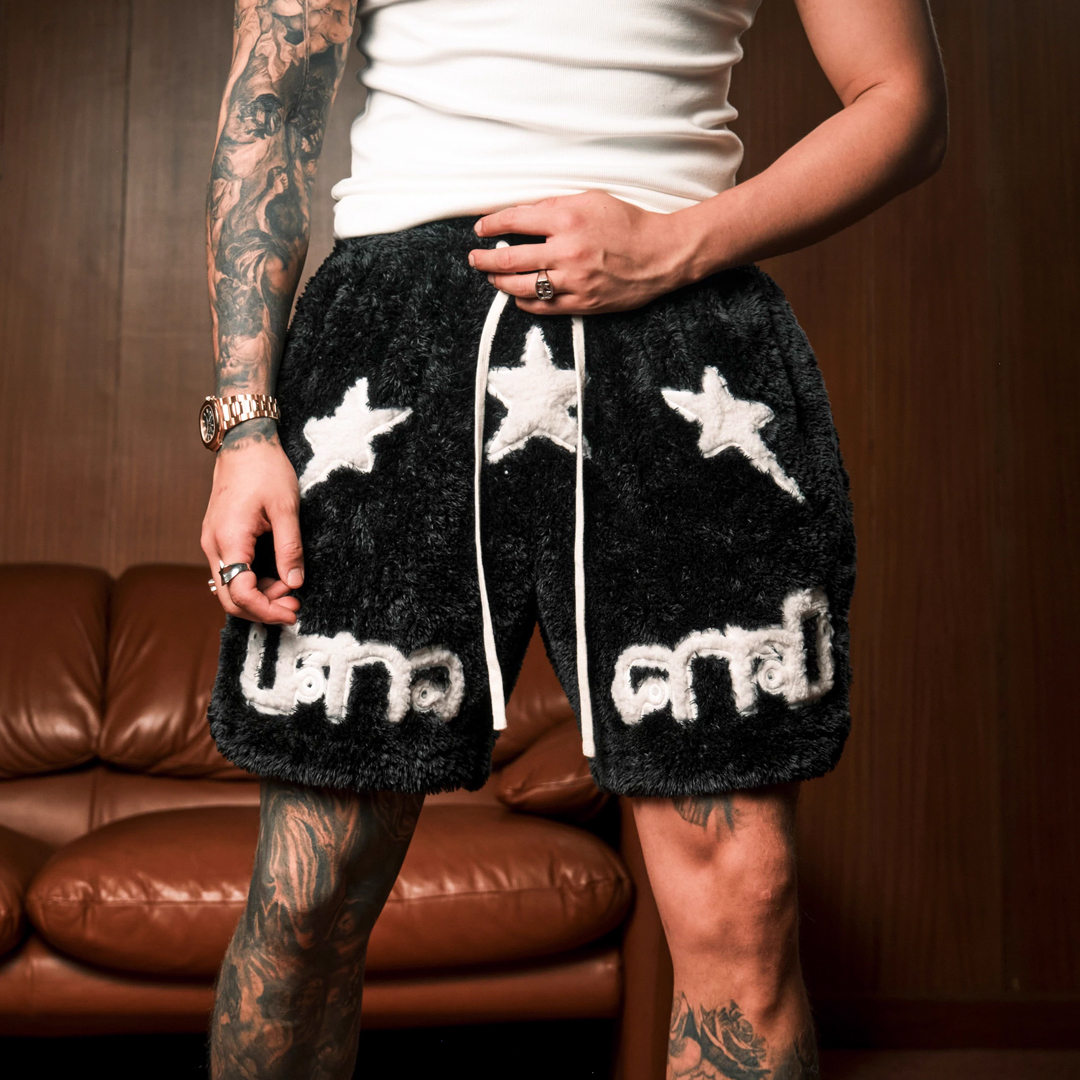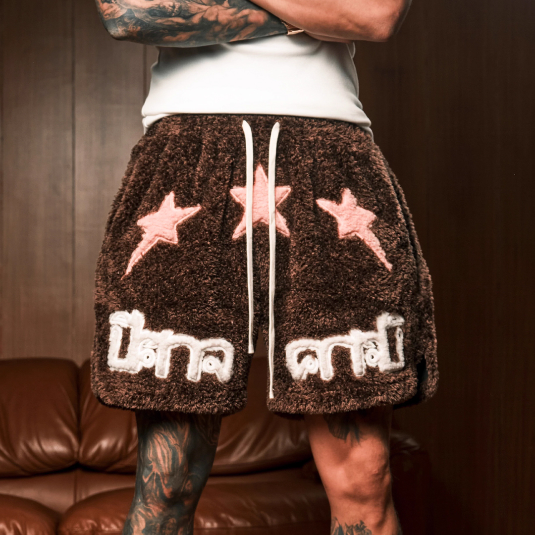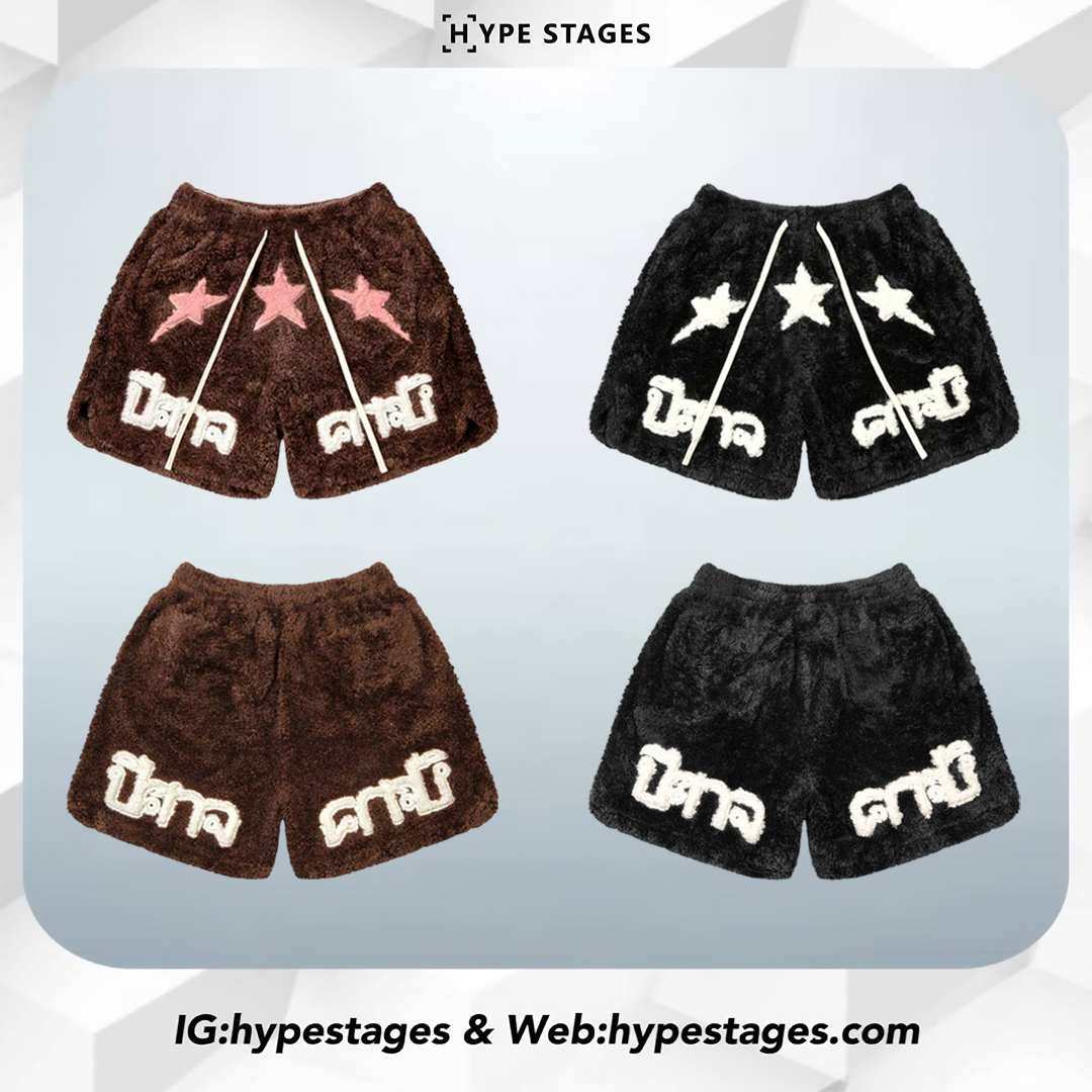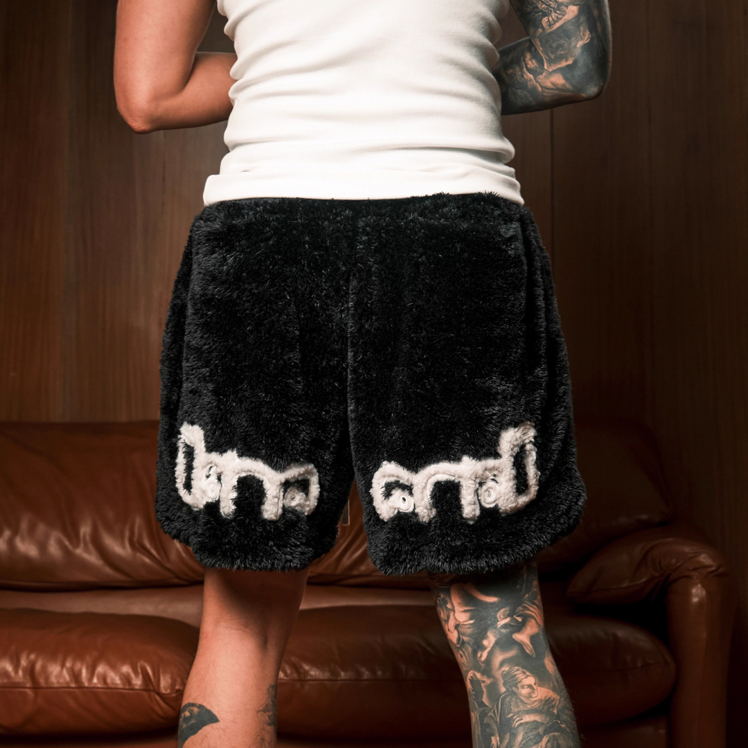 Make a statement in the ring or on the street with the RESERFF Embroidered Fur Boxing Shorts. These plush-textured shorts feature thick faux-fur construction with bold embroidered details that pop against the soft pile. Inspired by vintage boxing trunks, but elevated with streetwear energy and luxury texture.