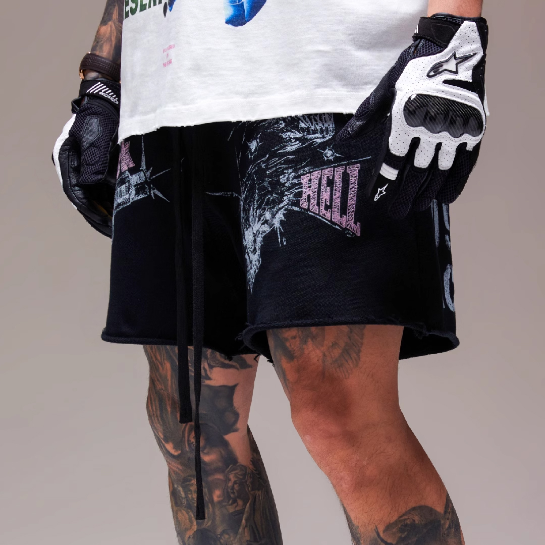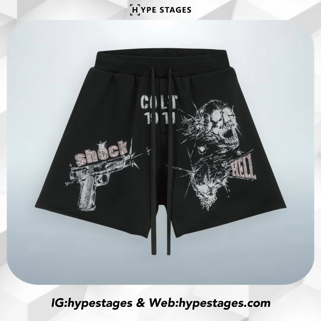 Make a bold statement with the RESERFF Glock Skull Shorts — a design that fuses street aggression with rebellious art. Featuring a bold Glock graphic, skull illustration, and “CHILL 711 / SHOCK” text overlays, this piece embodies the dark charisma of streetwear. The premium velour fabric adds a luxurious texture while staying breathable and comfortable for daily wear.