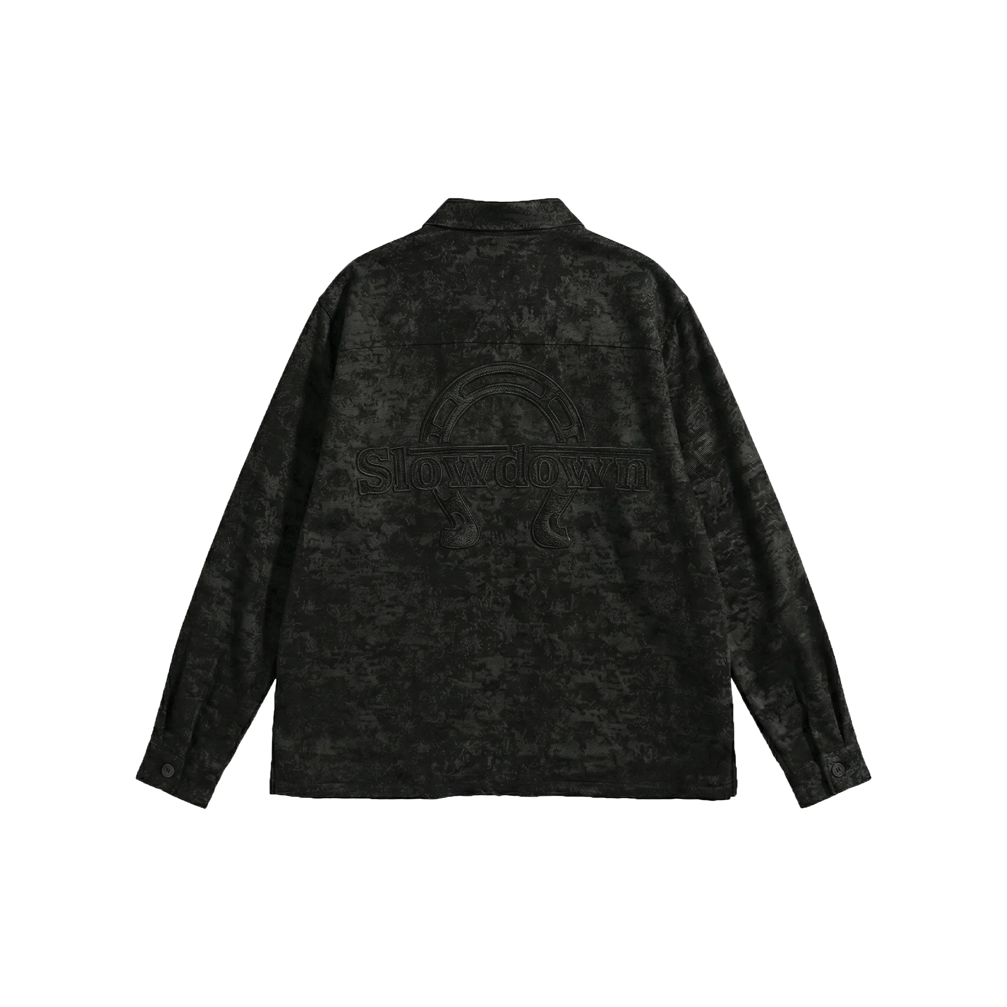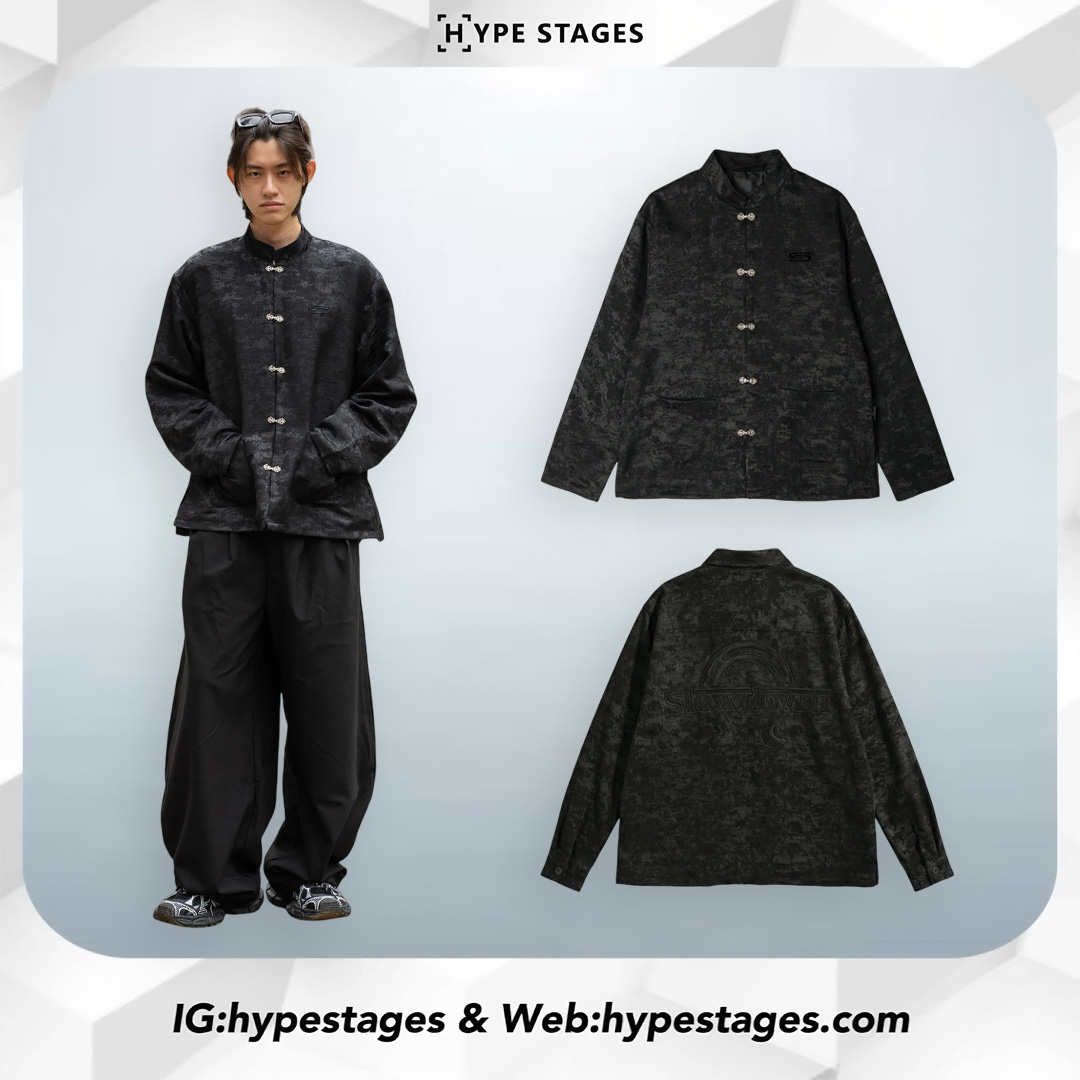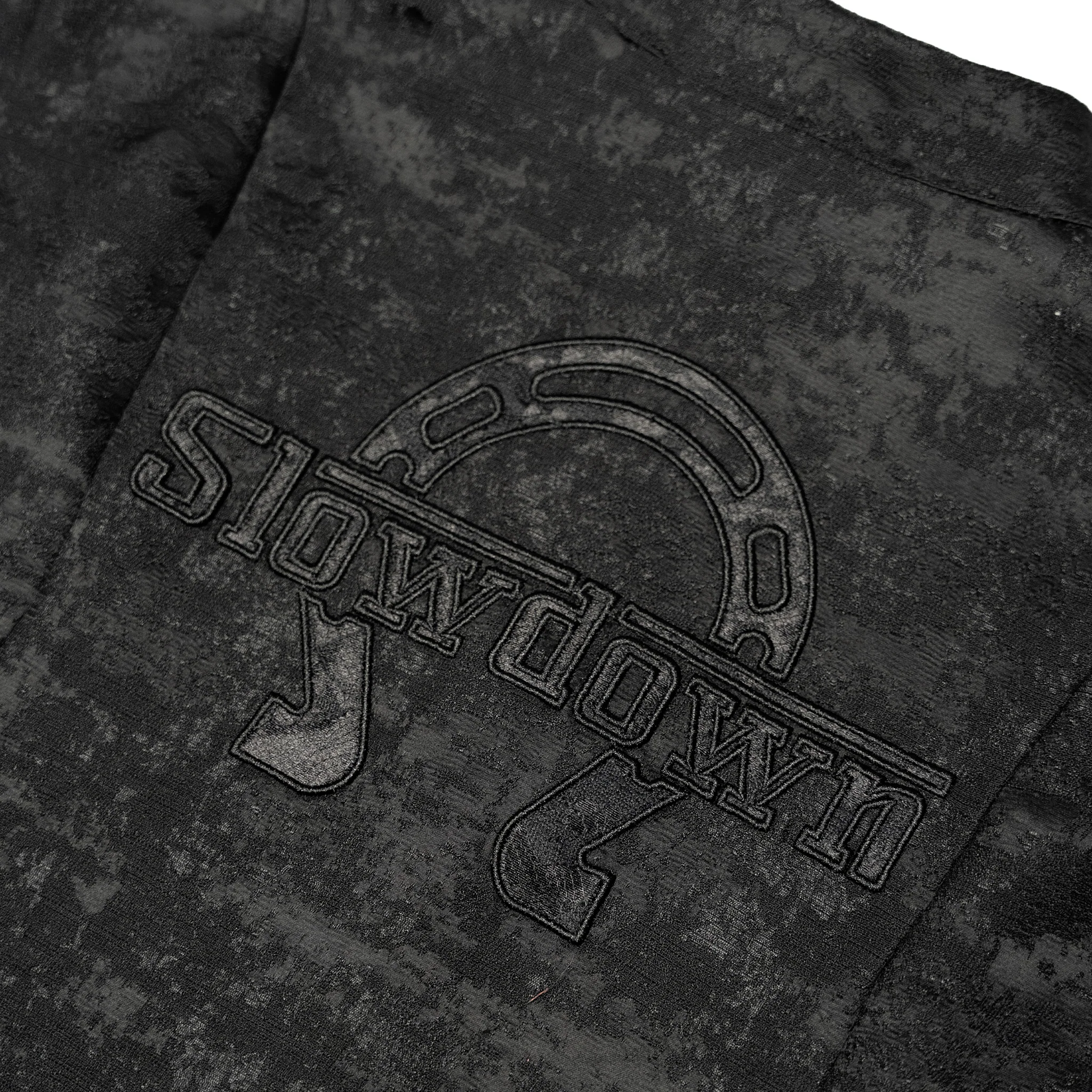 The SLOWDOWN Equine Tang Suit Jacket reimagines traditional Tang suit tailoring with contemporary sophistication. Crafted from premium 240 gsm silk fabric for refined drape and structure, this jacket features intricate front embroidery and delicate lace appliqué detailing on the back for dimensional visual interest. Completed with a relaxed streetwear silhouette, it elevates casual and smart-casual outfits alike.