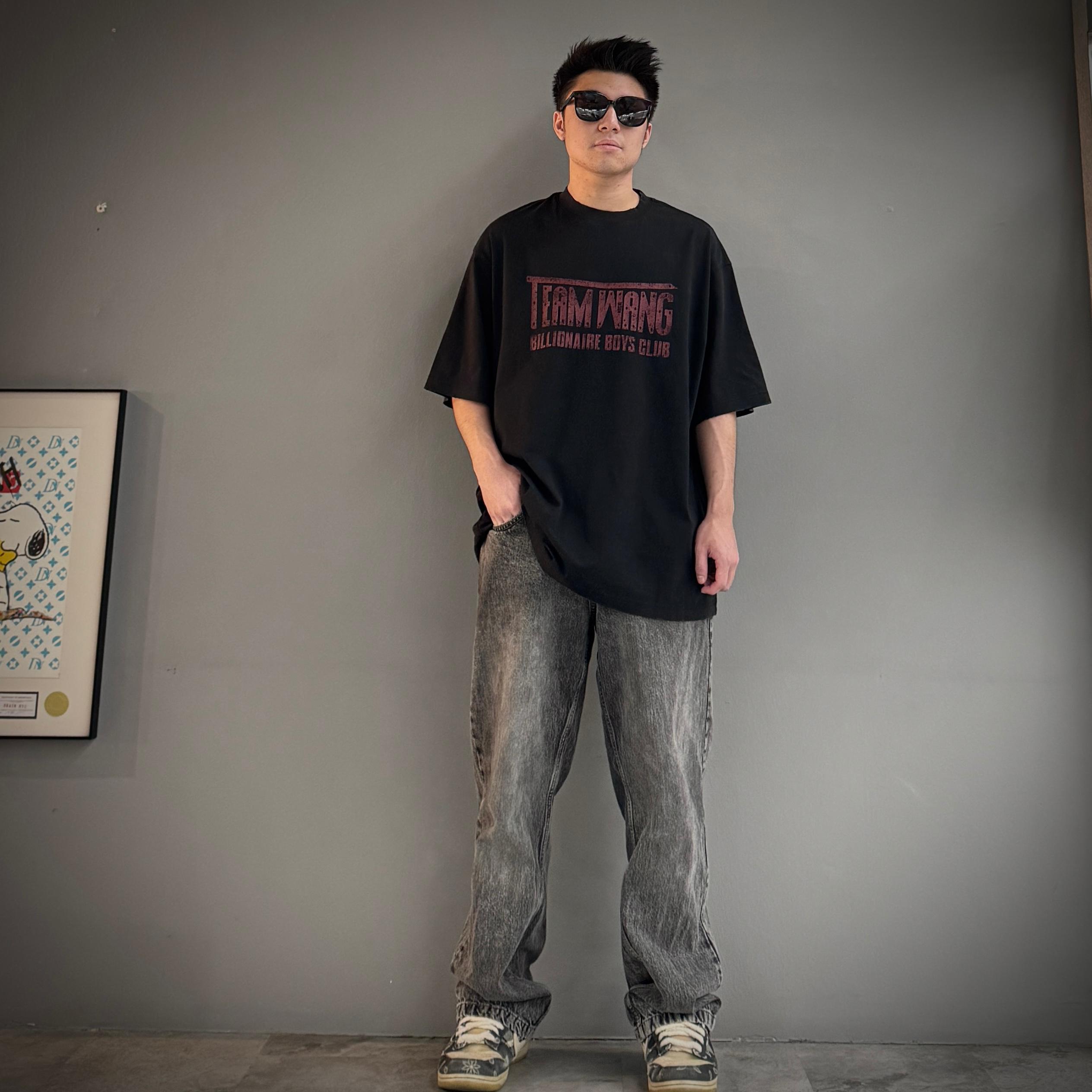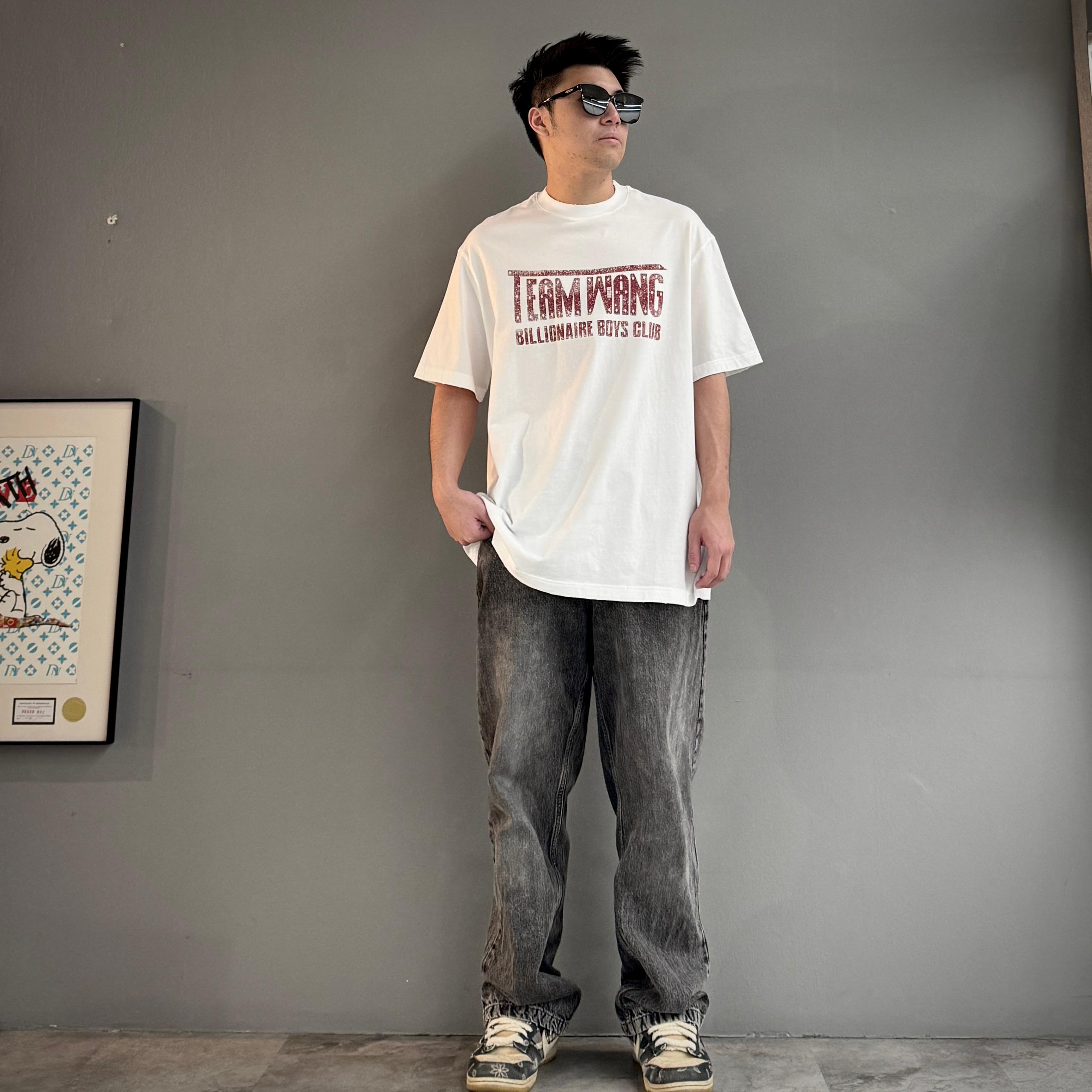 A powerful collaboration between TEAMWANG and Billionaire Boys Club, the “Life Is A Race Washed Tee” is crafted from premium cotton with a soft, vintage-washed finish. Featuring distressed double-sided logos and raw-edge detailing, this oversized tee blends streetwear attitude with iconic branding. Limited in release, it’s a bold statement piece for collectors and style leaders alike.
