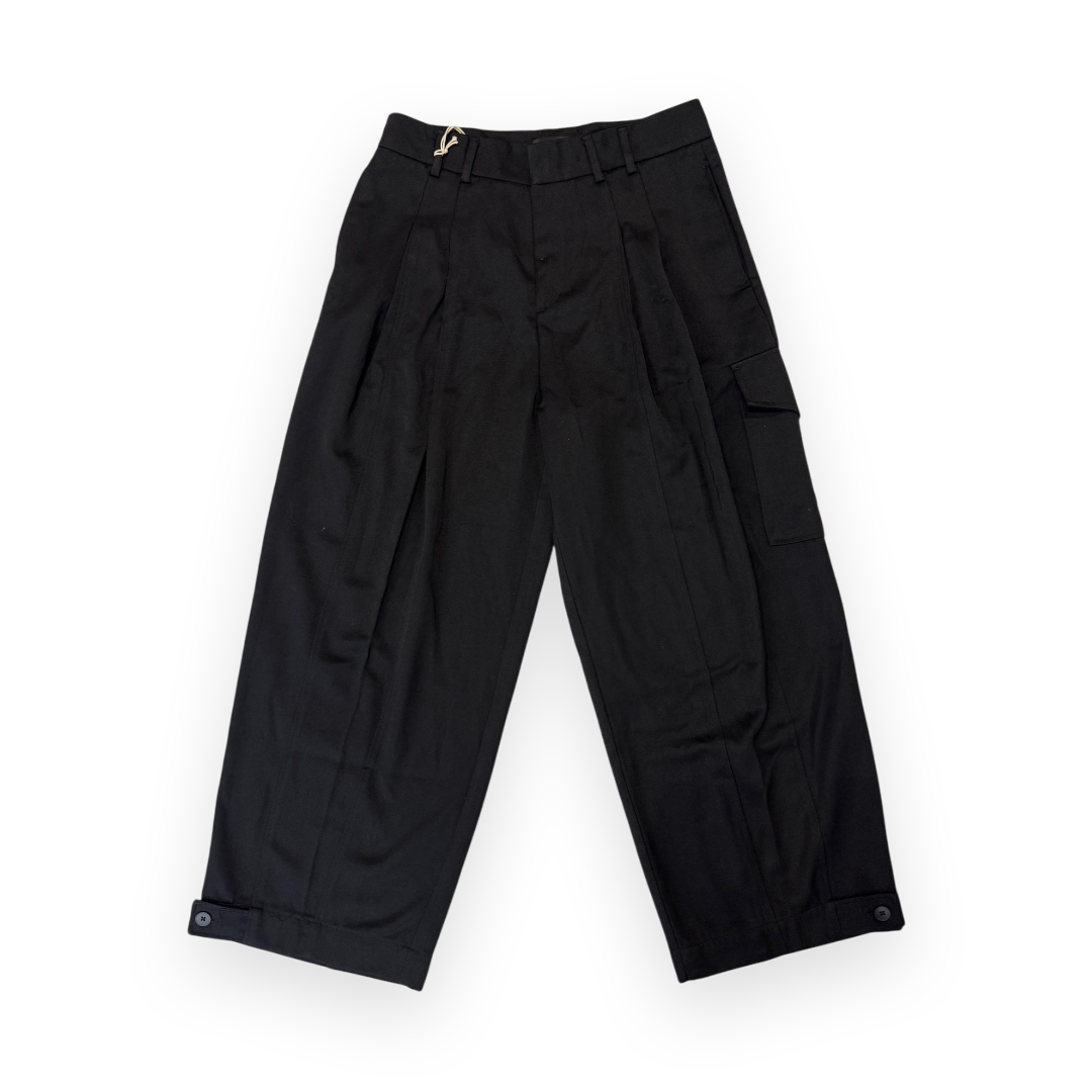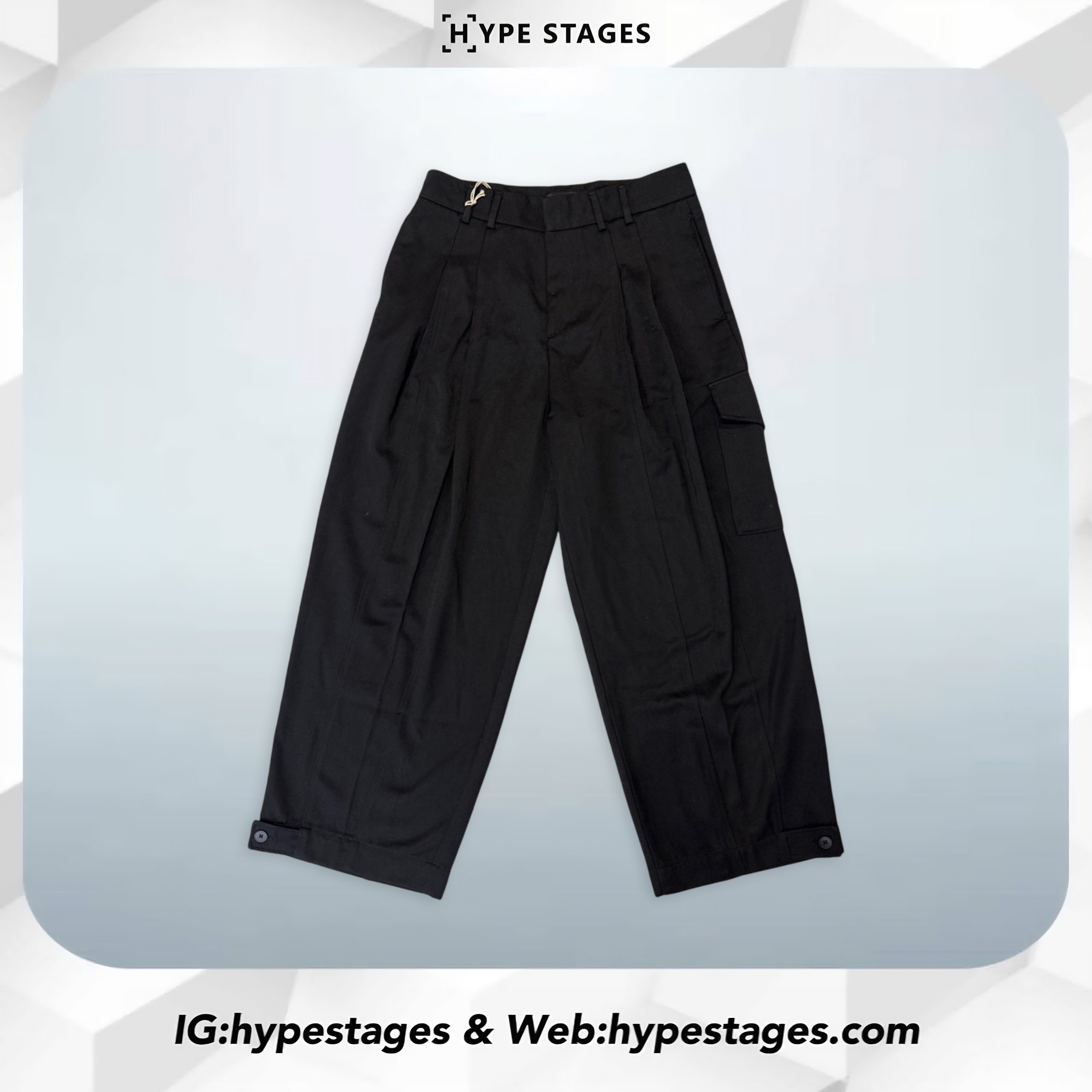 Designed with sharp pleats and modern cargo pocket placement, THE 3% Tailored Button Pants blend military influences with structured tailoring. A refined wide-leg cut, buttoned cuffs, and matte fabric finish make them ideal for elevated streetwear or minimalistic layering.