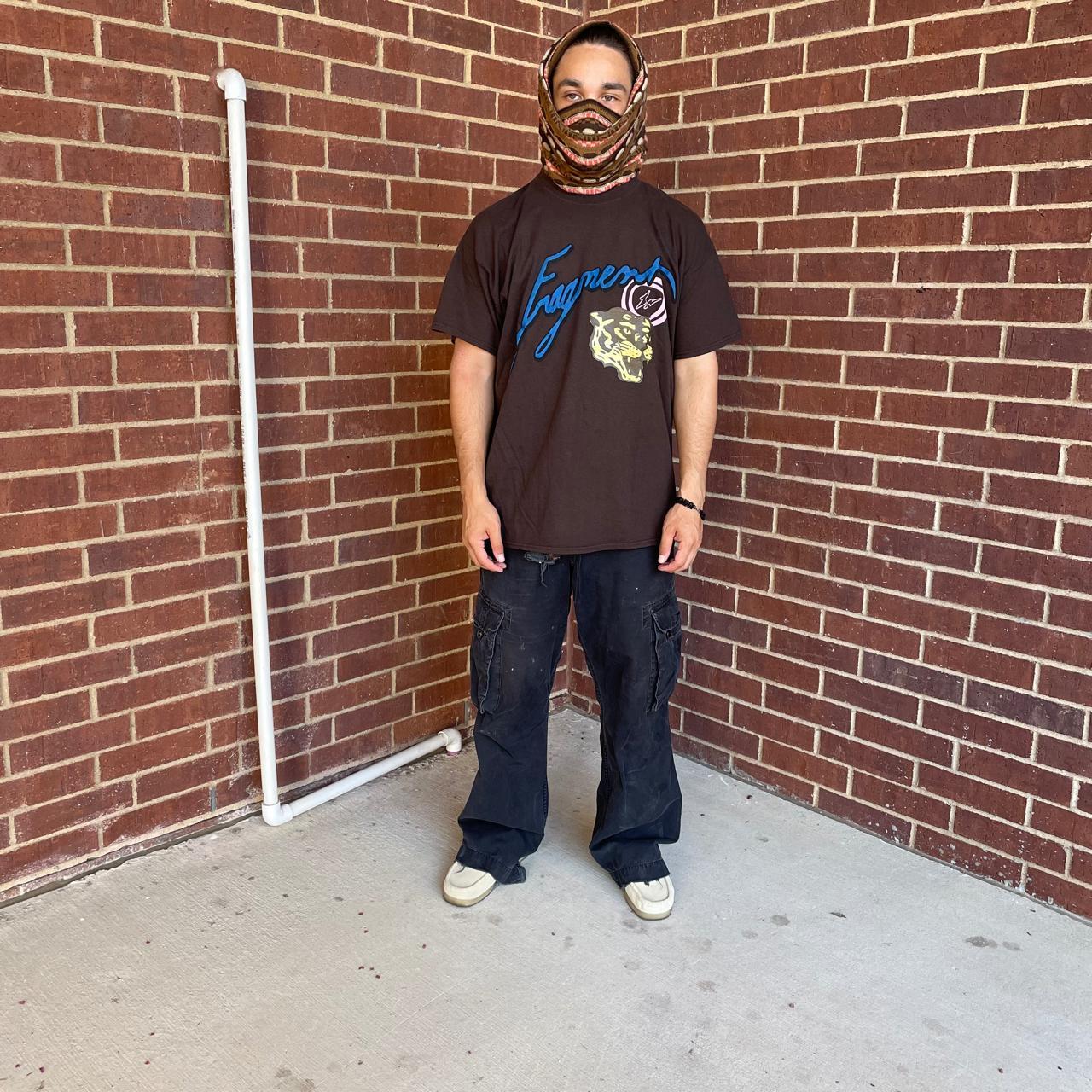 The Travis Scott x Fragment Icons Brown Tee spotlights both brands’ distinct identities with bold iconography. Featuring an oversized Fragment script logo and a lightning bear head graphic, this washed brown tee captures Cactus Jack’s unpredictable edge with Fragment’s cult status aesthetics.