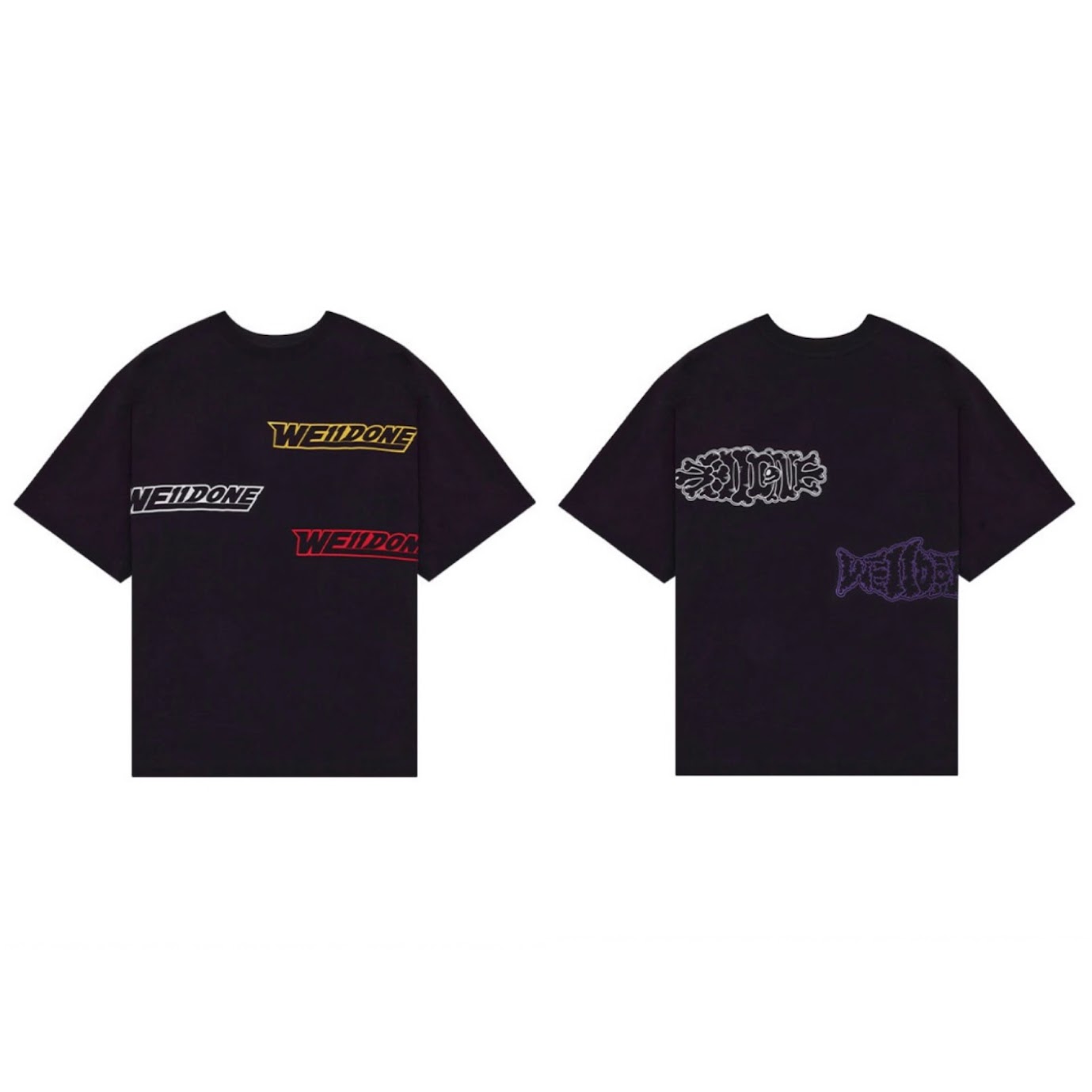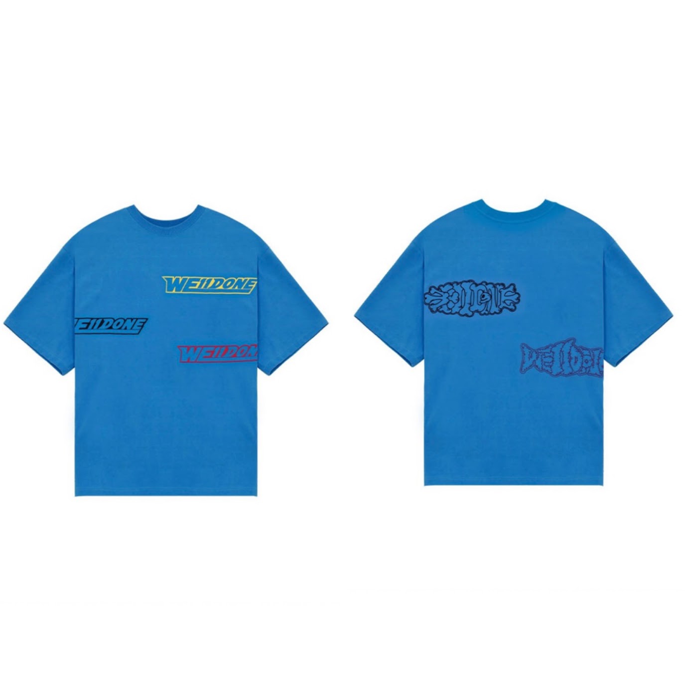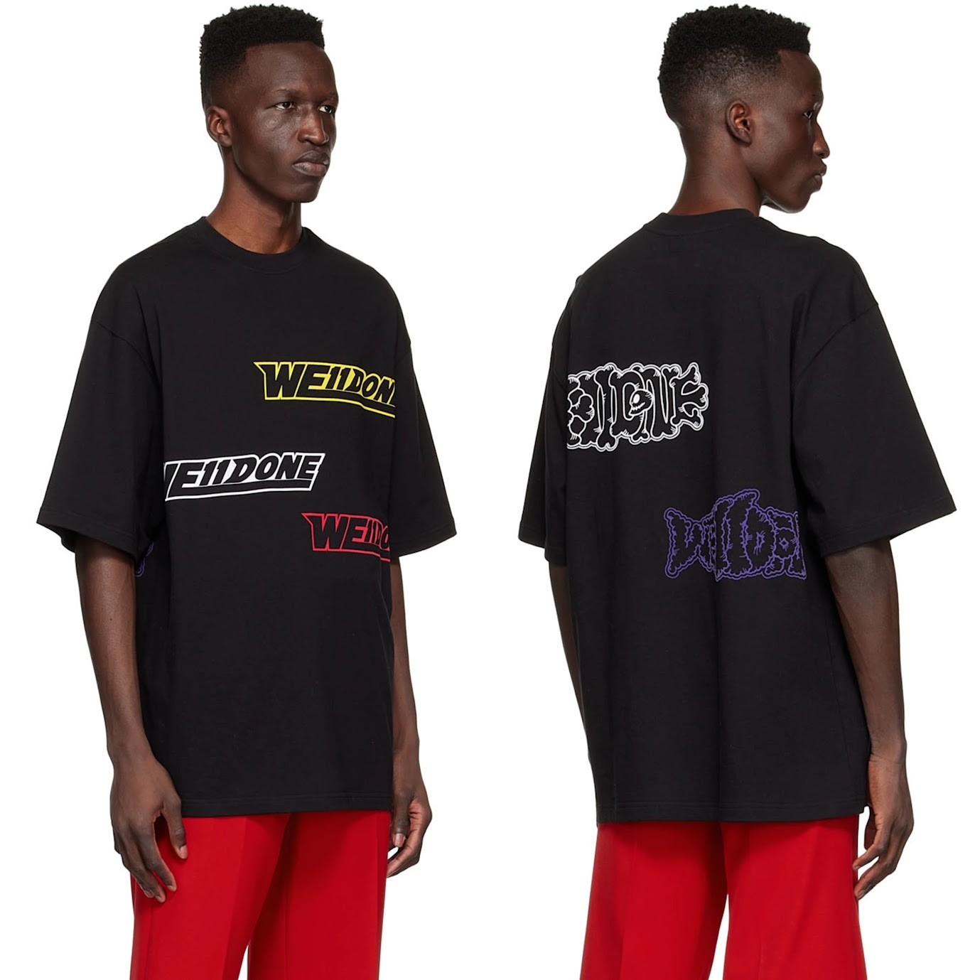 The WE11DONE Side Logo Tee delivers a bold twist on basics with double logo prints—one across the front and another on the side-back. The contrasting colors and oversized fit make this cotton tee a modern essential in black or blue variations.